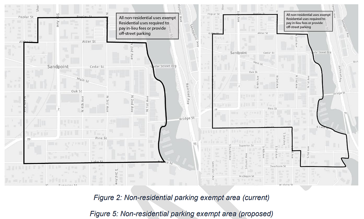 If the changes are approved by councilors this summer, Sandpoint’s downtown parking exempt zone will expand south and new residential developments within the zone will no longer qualify for the parking infrastructure exemption.