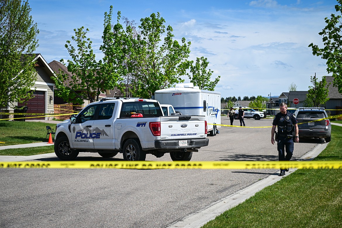 Kalispell's major crime unit trailer was at the property as detectives conducted the investigation in the suburban subdivision.