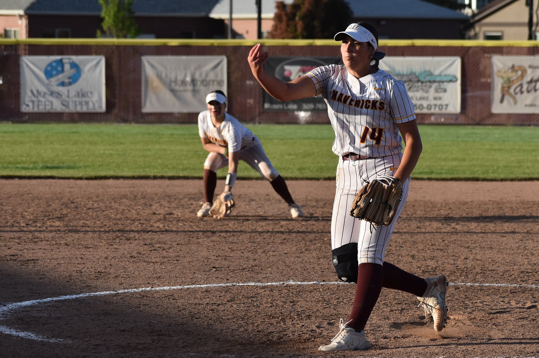 MOSES LAKE — The Moses Lake Mavericks softball team split their doubleheader against Eastmont on Friday, winning their first game 9-6 and losing the second 3-13.