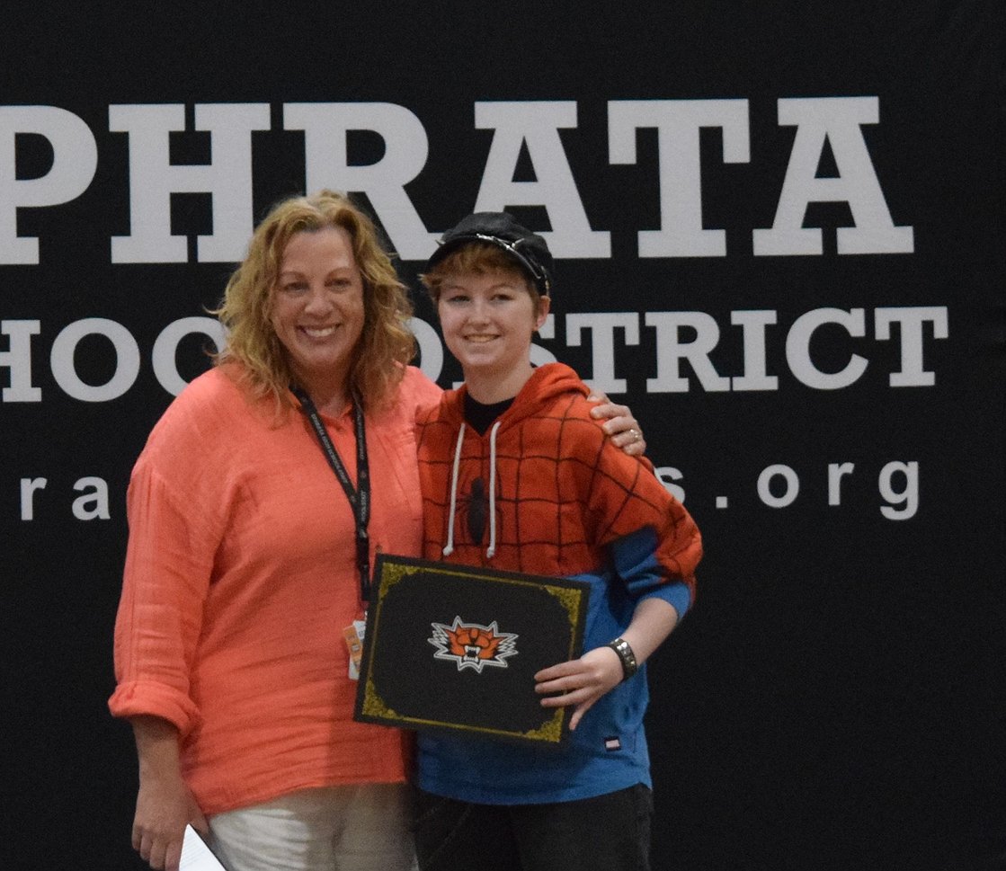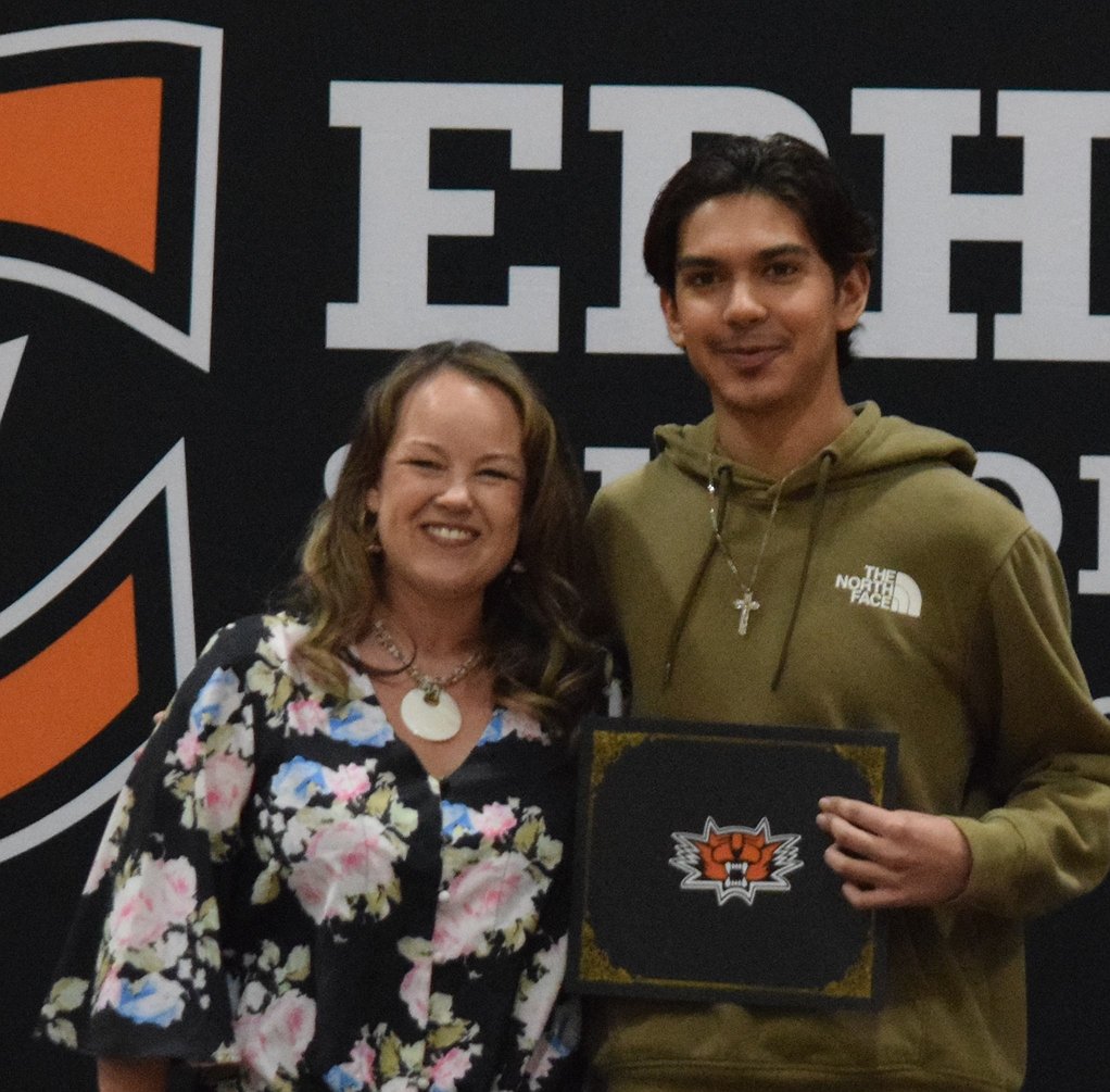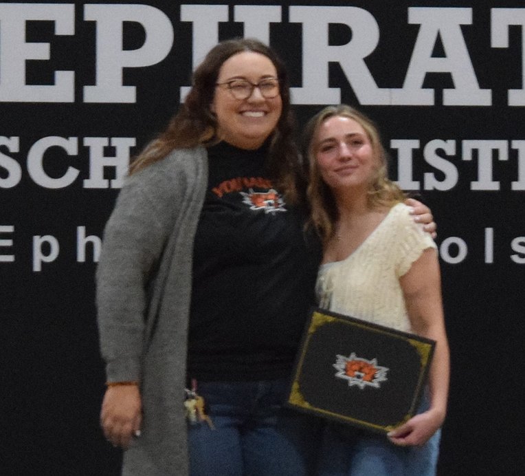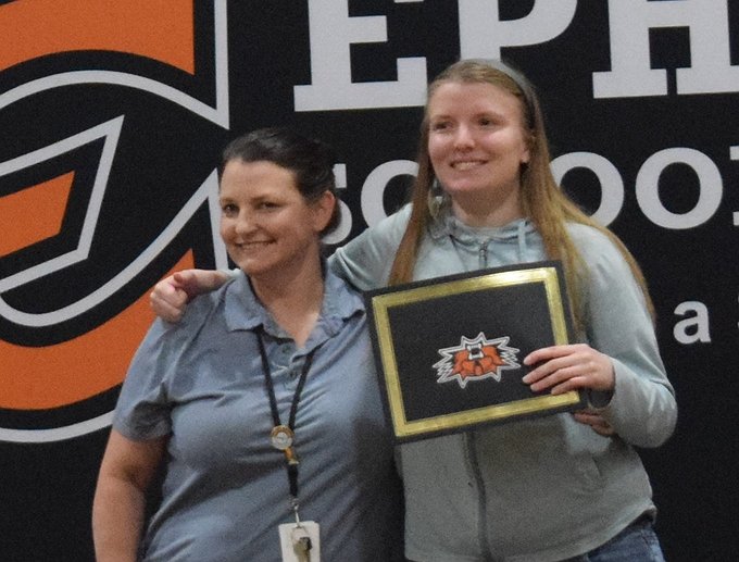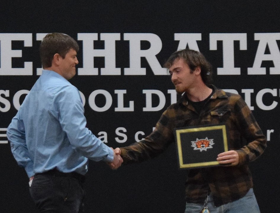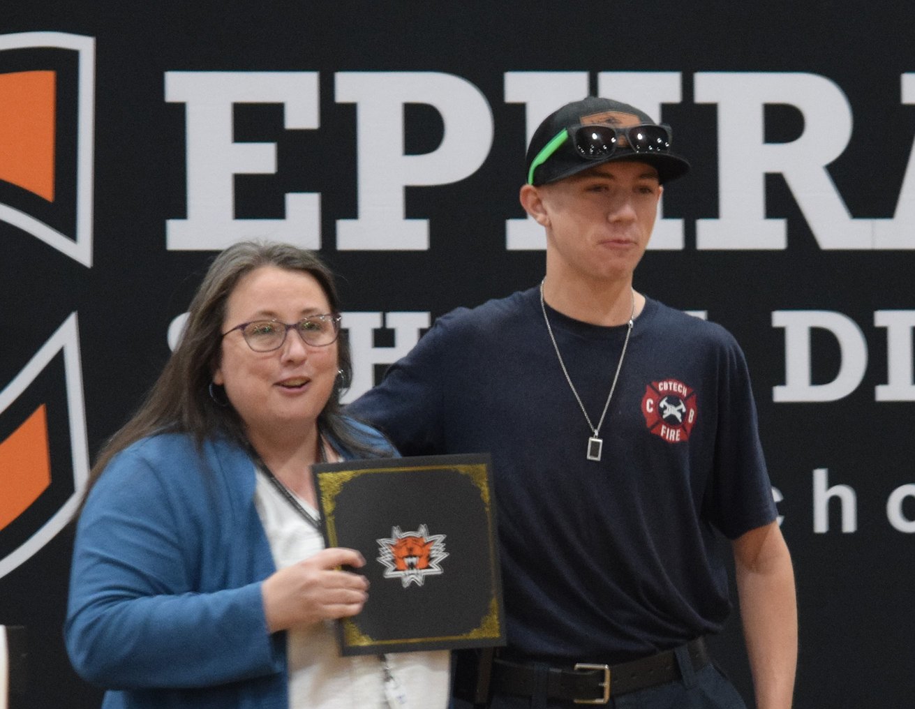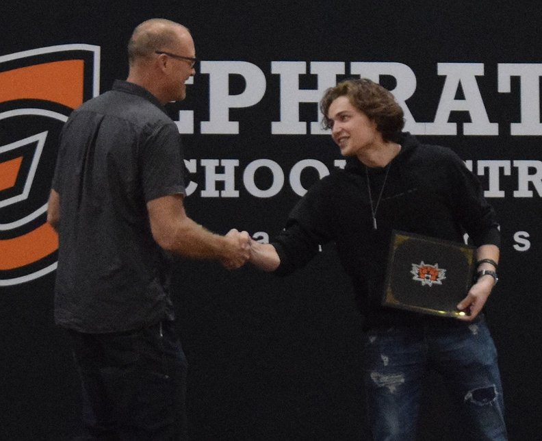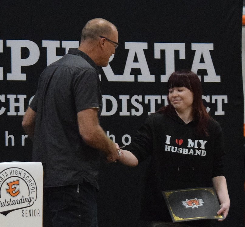 Ephrata High School Principal Ashlie Miller presented awards for the administration department. Zander Leasher was awarded the Outstanding Senior Award and Monty Muir was presented the Grit Award.