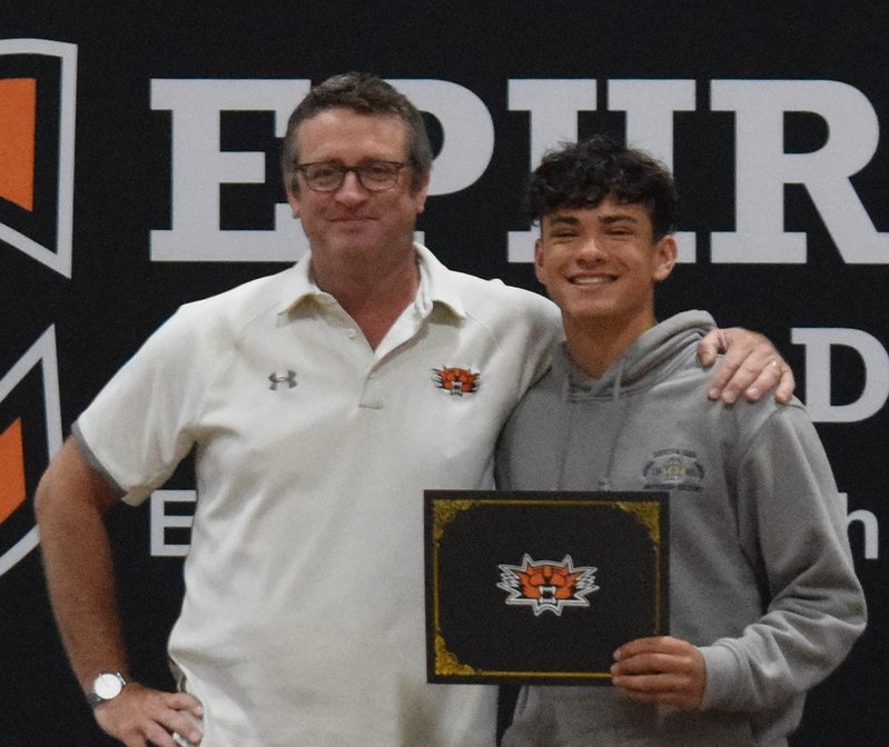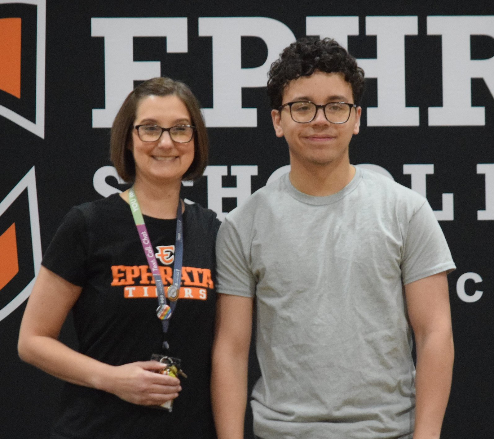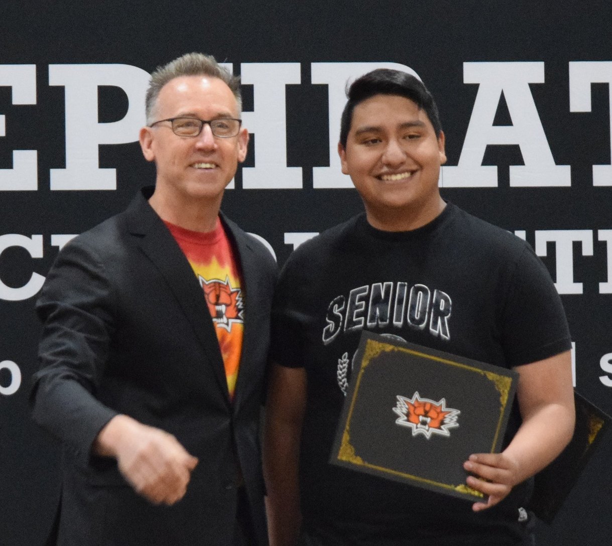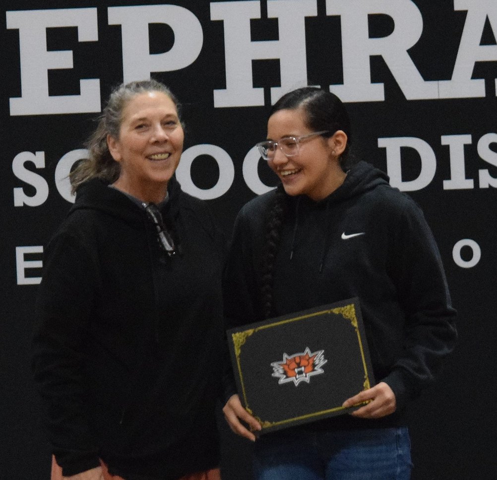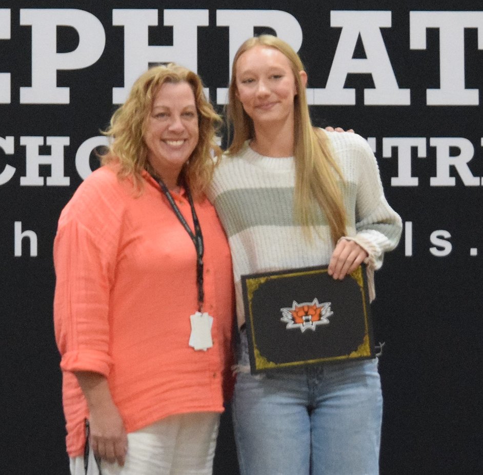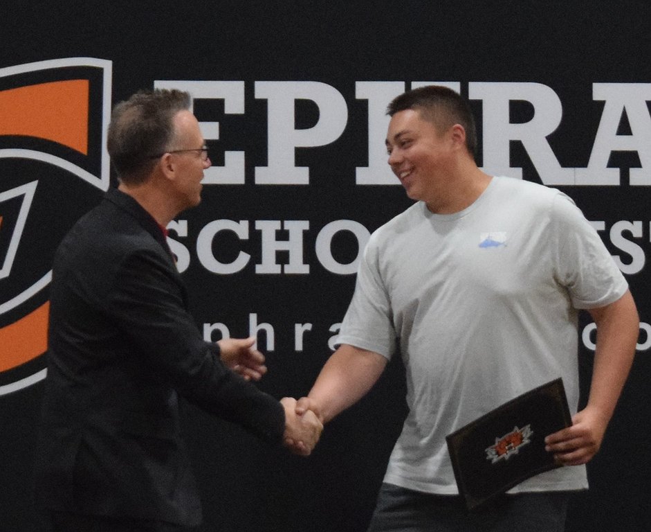 Ephrata High School Principal Ashlie Miller presented awards for the administration department. Zander Leasher was awarded the Outstanding Senior Award and Monty Muir was presented the Grit Award.