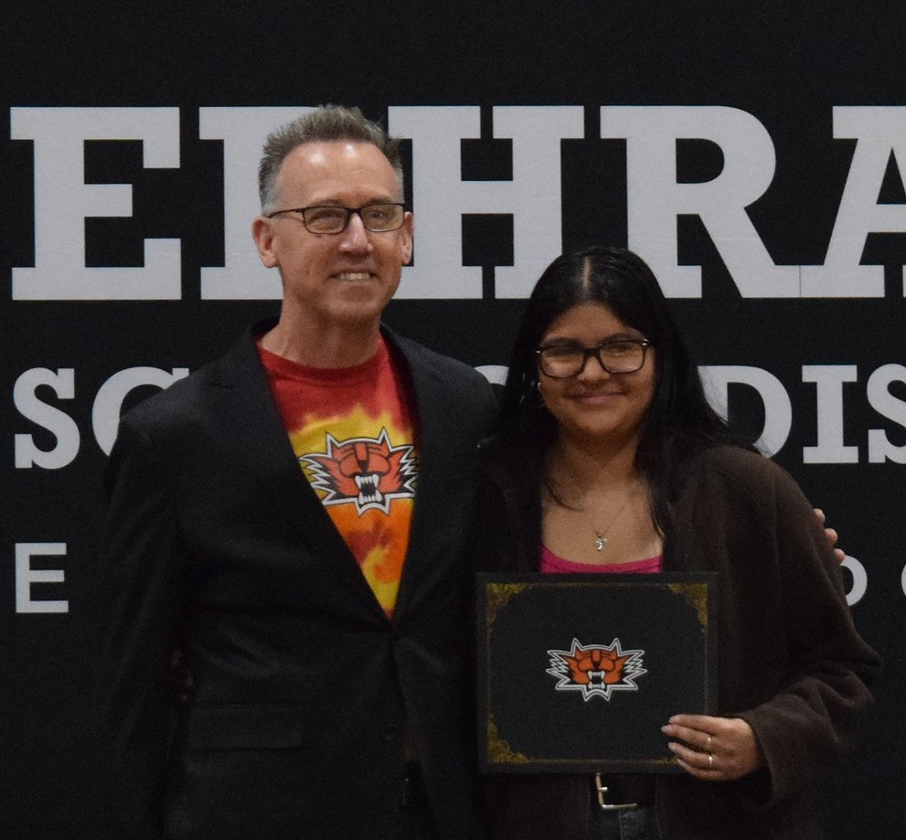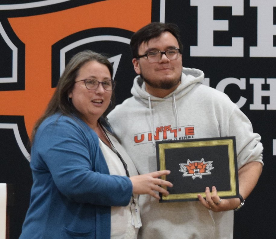 Michele Ramirez, representing the math department, awarded Cayleb Sedgewick with the Outstanding Senior Award and Arys Navarro with the Grit Award.