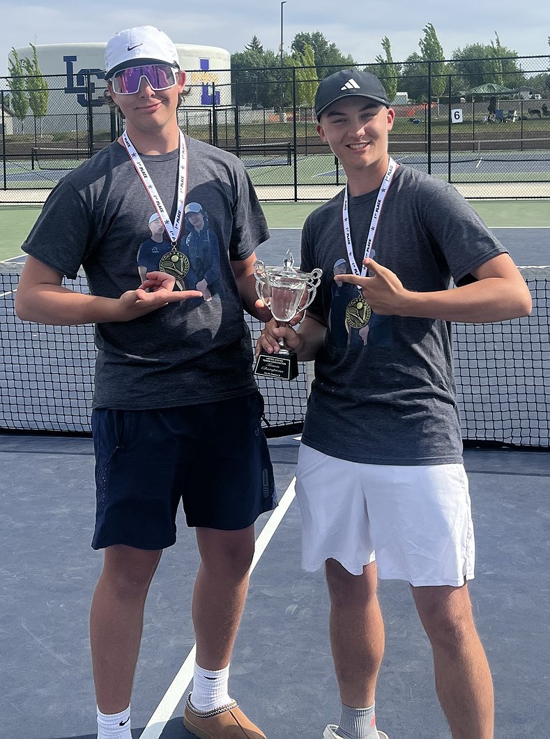BOYS DOUBLES — Tate Burkholder/Owen Sharp, Cd'A Charter, d. Aeden Aguire/Thomas Strait, Cd'A Charter, 6-0, 6-0.