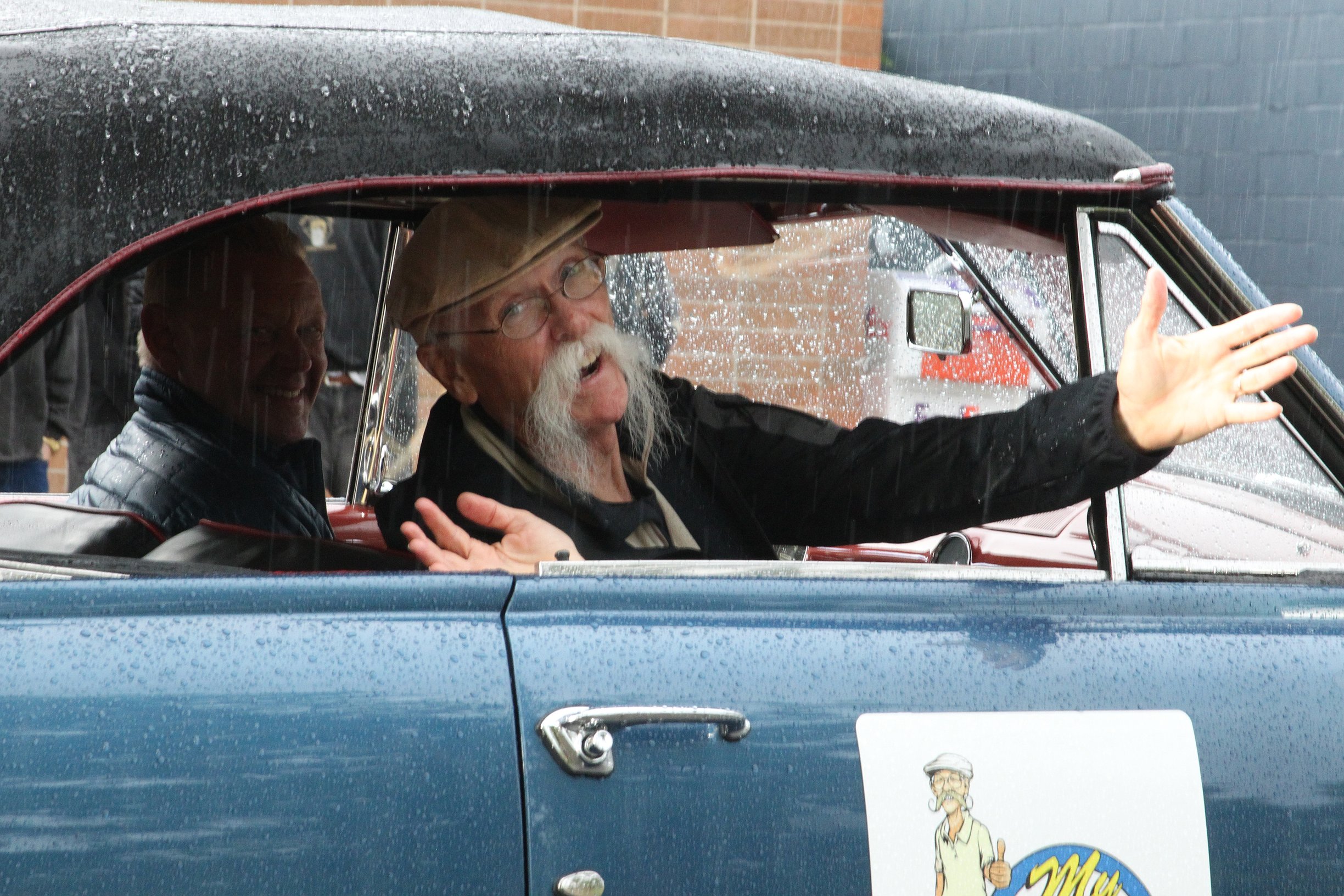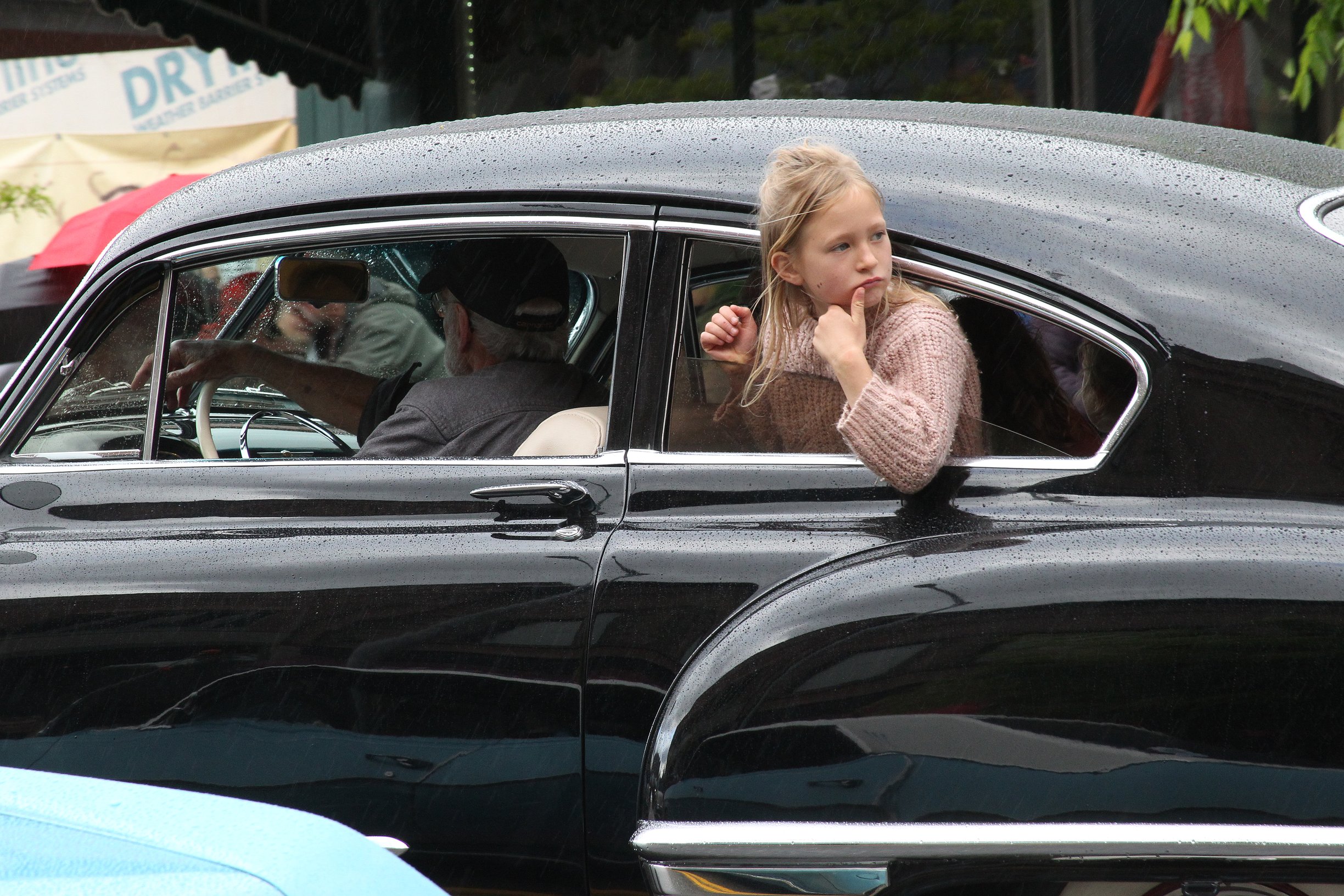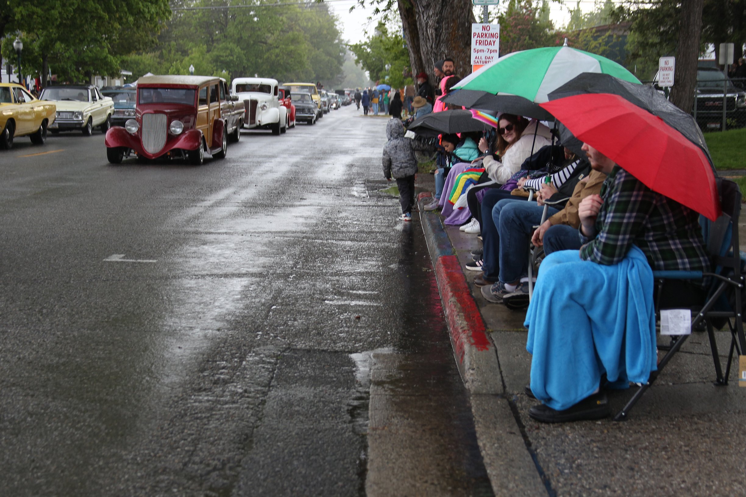 It just meant a few umbrellas — both on the sidewalks and some of the cars — as fans of the '50s worked to stay dry.