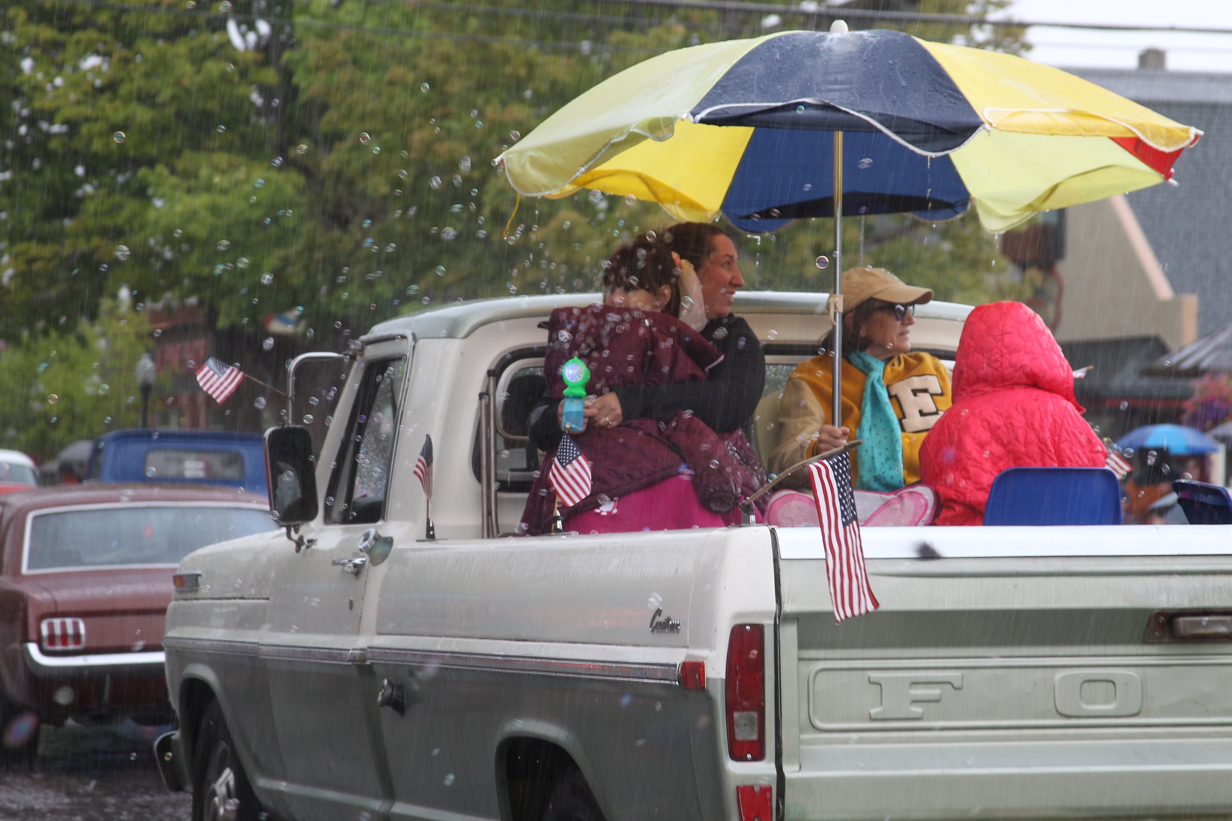 "We've been coming (to the parade) since we were kids," Annette Borges as she sat with family huddled under a thick blanket and an oversized umbrella overhead to ward off the drizzle that kept a steady presence throughout the hour-plus-long parade.