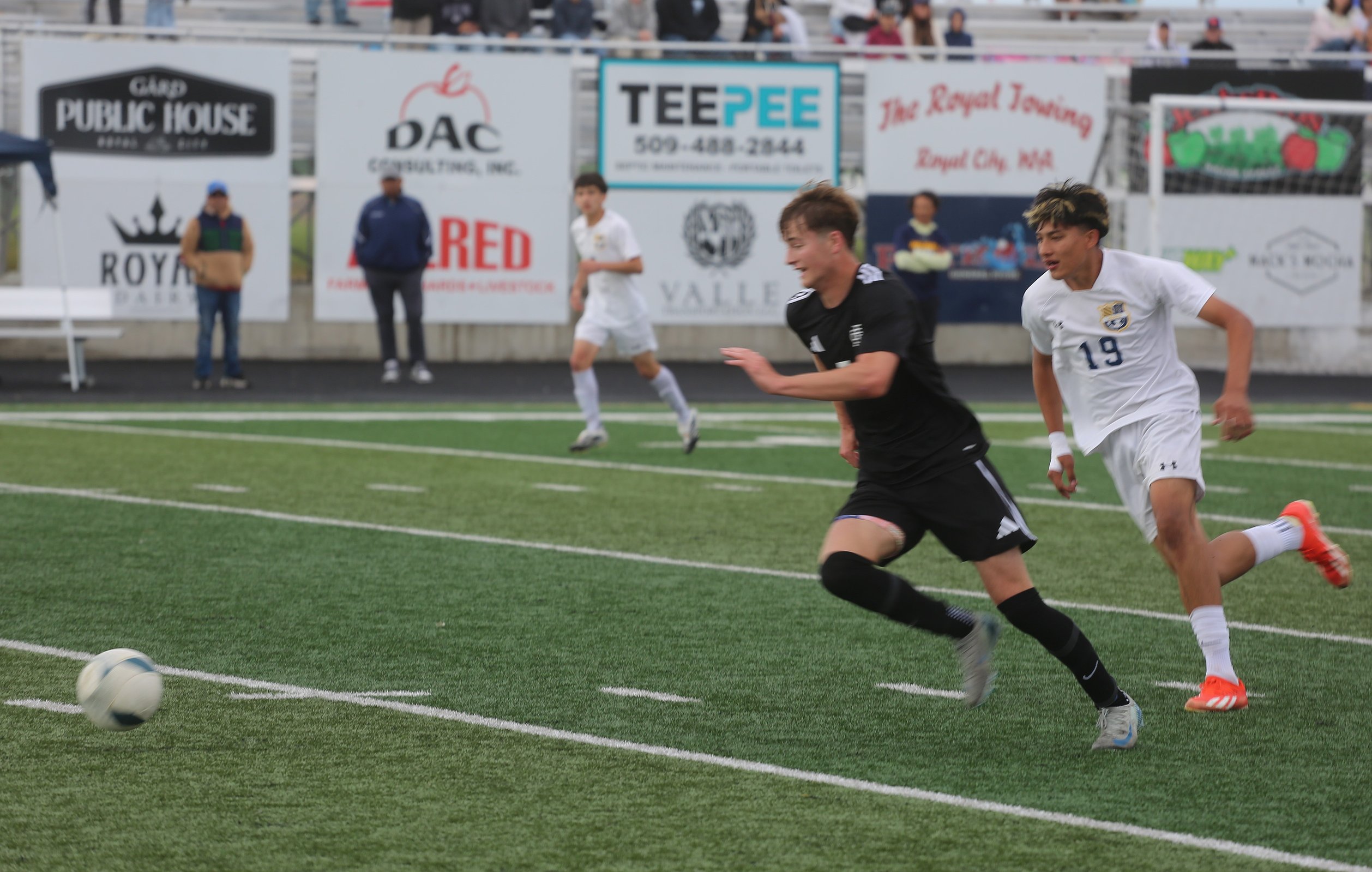 ROYAL CITY – The Knights boys soccer team (16-3) defeated the Wapato Wolves (14-5) 3-1 to win their second straight 1A district championship Saturday. Anderson Brown contributed heavily for the Knights, accounting for two goals in the first half.