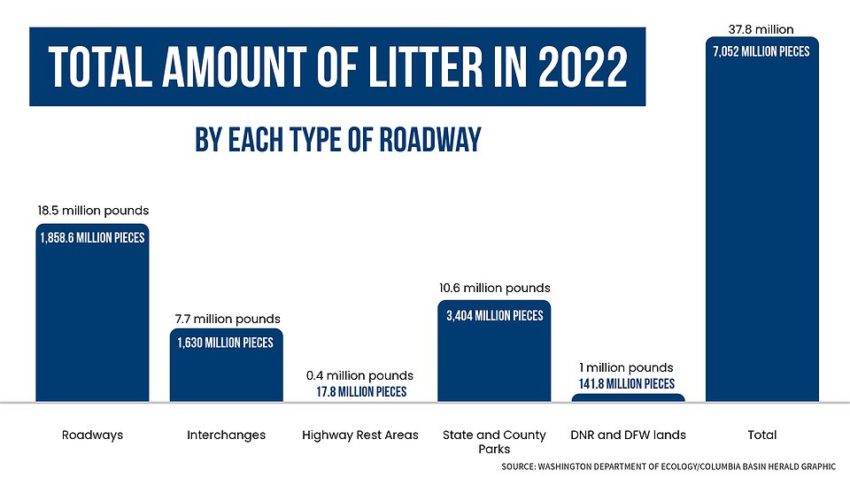 Washingtonians were responsible for nearly 38 million pounds of litter annually, which is around 5 pounds per person or 897 pieces of litter, according to the report.