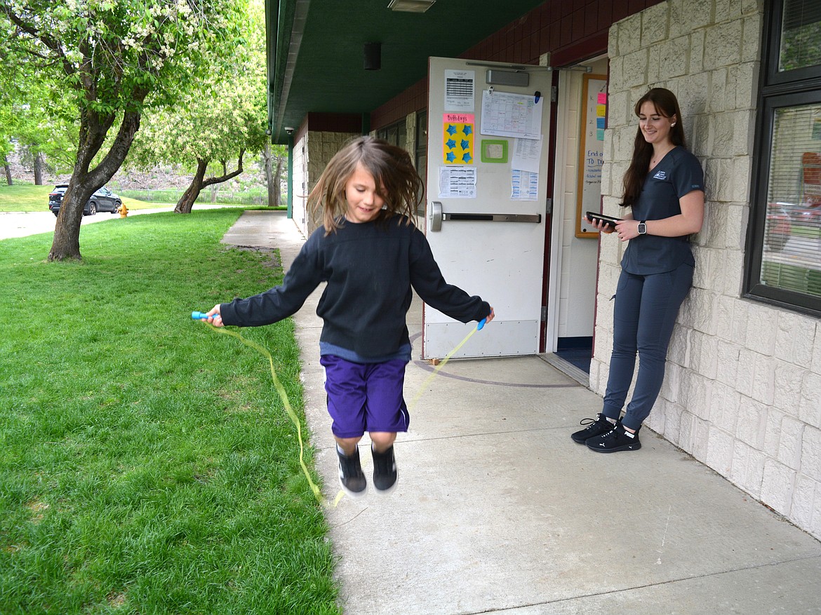 In a different room, North Idaho College nursing student Brianna Ber taught students about their heart rates, having them count out their heartbeats and then jump rope for a few minutes to demonstrate how the heart rate changes.