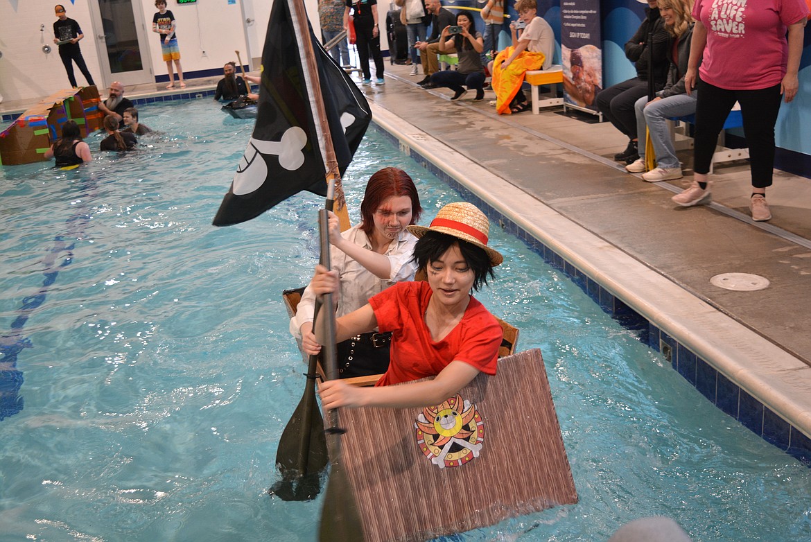 COEUR d’ALENE — It was a trip to the movies by way of the pool Monday as the cardboard boats races began.