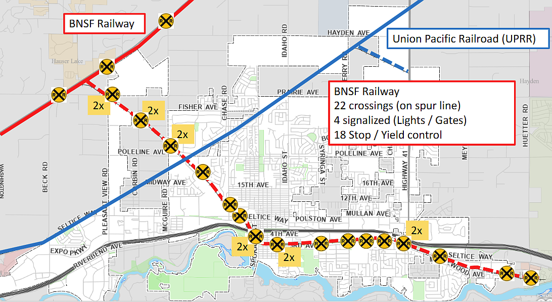 Palus said the city revisits the idea every few years as a remedy for railroad horns for the Burlington Northern Santa Fe Railway along the northern portion of the city and the Union Pacific Railroad through a number of residential areas in Post Falls.
