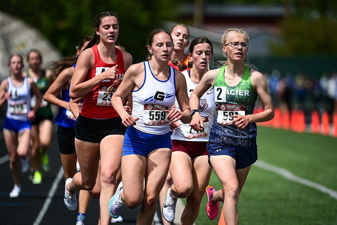 Glacier's Lauren Bissen placed first in the girls' 3,200 meter run at the Class AA state track and field meet at Legends Stadium on Friday, May 23. (Casey Kreider/Daily Inter Lake)