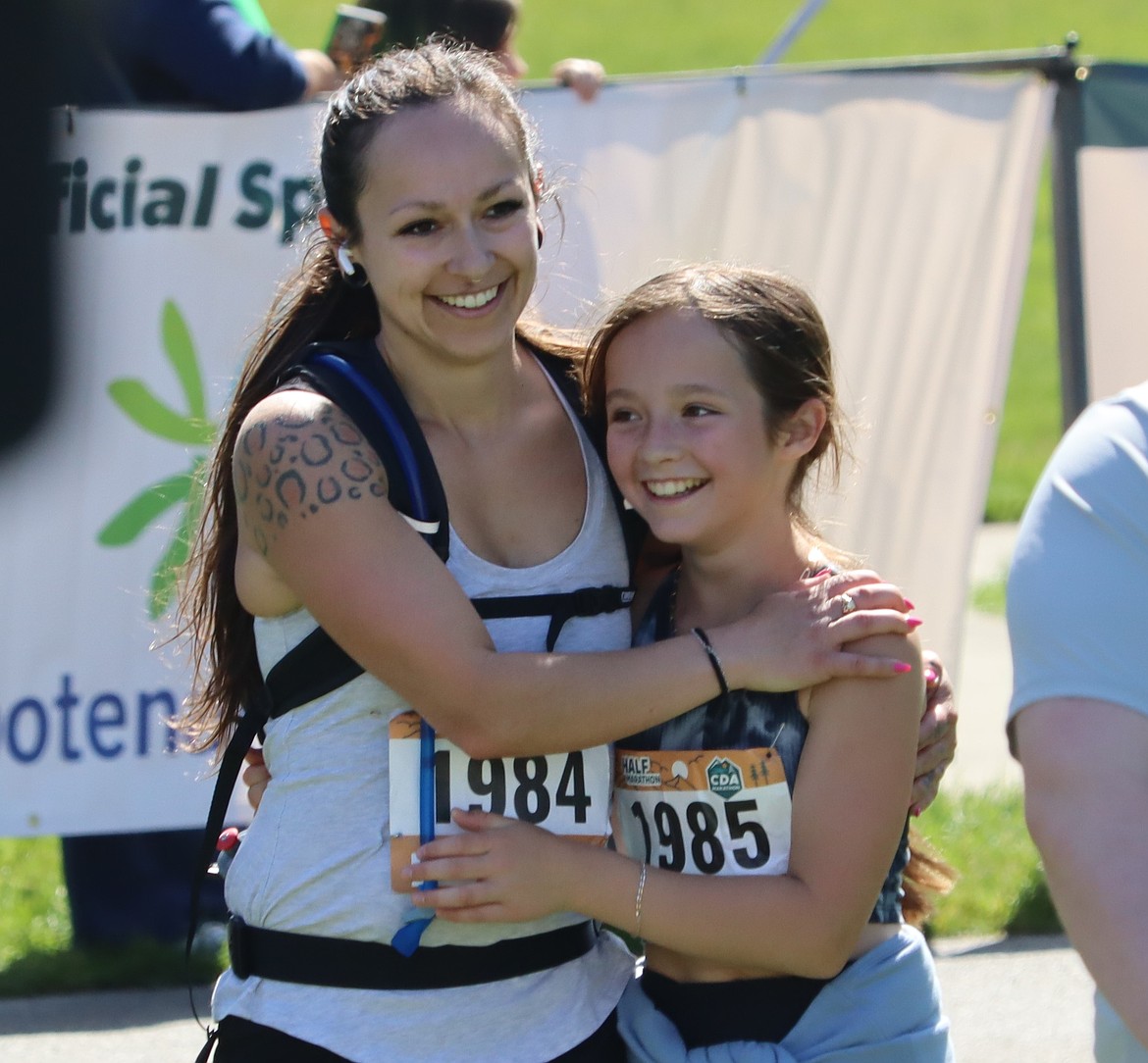 They took their time and enjoyed the sunny morning and the course with views of Lake Coeur d’Alene. Abryele, 11, was nervous during her first half-marathon while her mom was running her second.