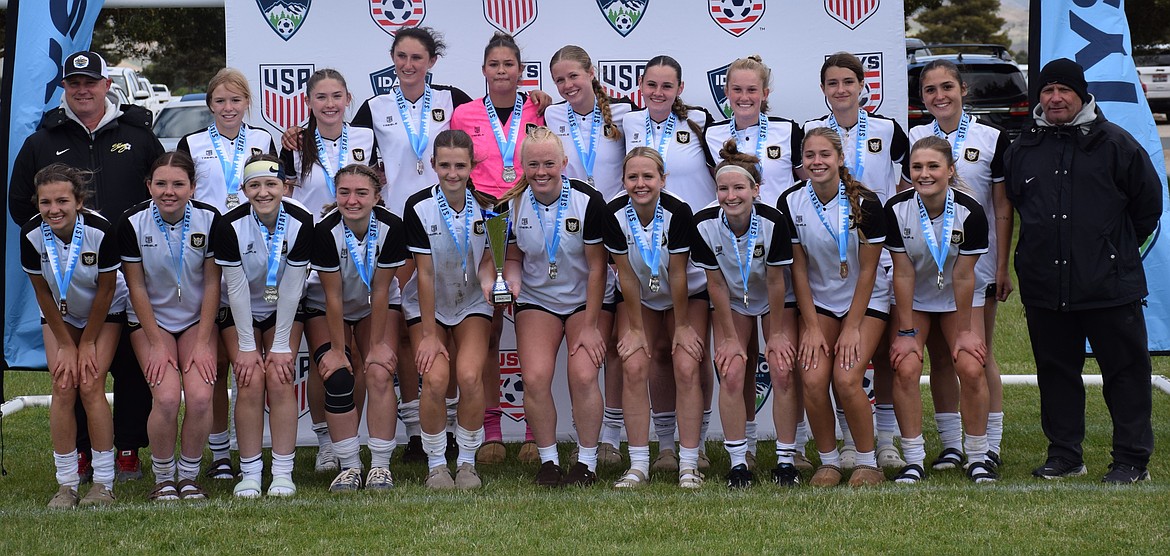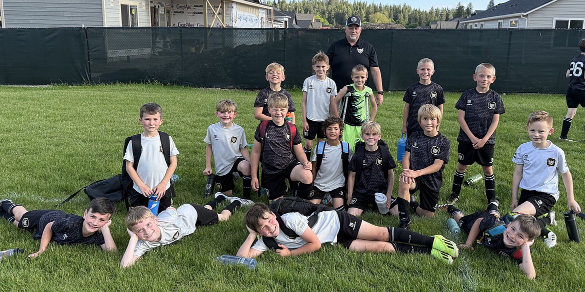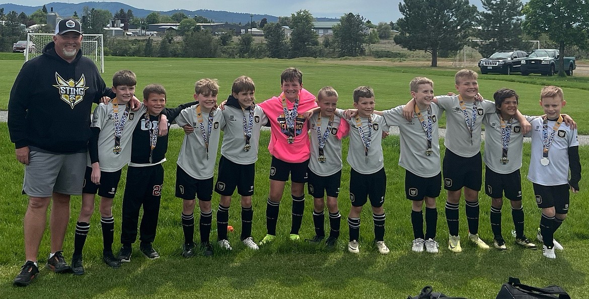 Photo by LONDON MALMSTADT Over the Mother’s Day weekend for the annual Bill Eisenwinter Hot Shot Tournament at the Plante's Ferry Sports Complex in Spokane Valley, the Sting U9 Boys Black team made it into the Sunday finals. Friday’s game ended with a 5-3 win against the Spokane Shadow Juniors B2016 North Belles. Sting goals were scored by Jackson Martin (3), Lincoln Triebwasser (1) and Oliver Lundy (1). Saturday’s game against the Spokane Sounders Shadow Junior B2016 Van Der Lawson Valley Team ended with a 6-1 loss, with the Sting goal scored by Jackson Martin. Sunday’s semifinals game ended with a 4-1 win against the Sandpoint Strikers FC U08 Red Team, with all four Sting goals scored by Lincoln Triebwasser. Sunday afternoon's championship game against the Spokane Shadow Juniors B2016 Van Der Lawson Valley Team ended with a 5-2 loss. Both Sting goals were scored by Jackson Martin. From left are coach Ian McKenna, Peter Ward, Jaiden Abdurahmanov, Wesson Malmstadt, Oliver Lundy, Jackson Martin, Kevin Sahm, Emmett Cowan, Leo Leferink, Lincoln Triebwasser, Kellen McLemore and Drew Fulton.