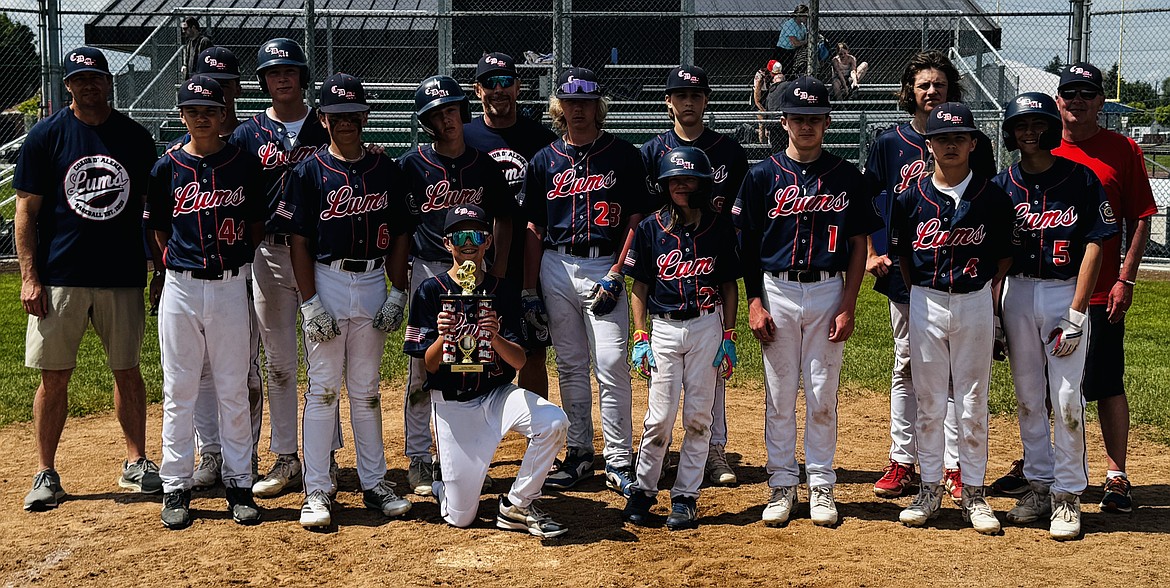 Courtesy photo The 14U Coeur d'Alene Lumbermen baseball team finished in second place in the gold bracket last weekend at the Memorial Day Super Bash tournament in Spokane. In the front (kneeling) is Kyle Everson; second row from left, Blake Anderson, Clay Larwin, JJ Larson, Josh Gomez, Jack Kreis, Kovack Dolan, Nash Russell and Levi Miller; and back row from left, manager Dave Everson, Cooper Fordham, Trent Lilyquist, coach Jon Larson, Ricky Bateman, Caleb Brumbach and coach Jeff Kreis.