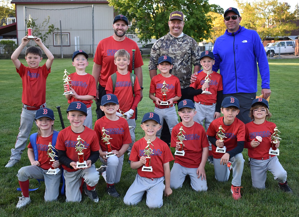 Courtesy photo The AA Red Sox baseball from Coeur d’Alene Little Lleague recently completed an undefeated season. In the front row from left are Theo Briner, Cam Bennett, Jackson Trail, Brendan Everson, Austin Schindelbeck, Tanner McLeod and Ben Taylor; middle row from left, Blake Niles, Rebel Larson, Connor Gregg, Ryatt Maestas and Henry Mandel; and back row from left, coaches Erich Schindelbeck, Mike Gregg and Chase Bennett. Not pictured is Grant Anderson.