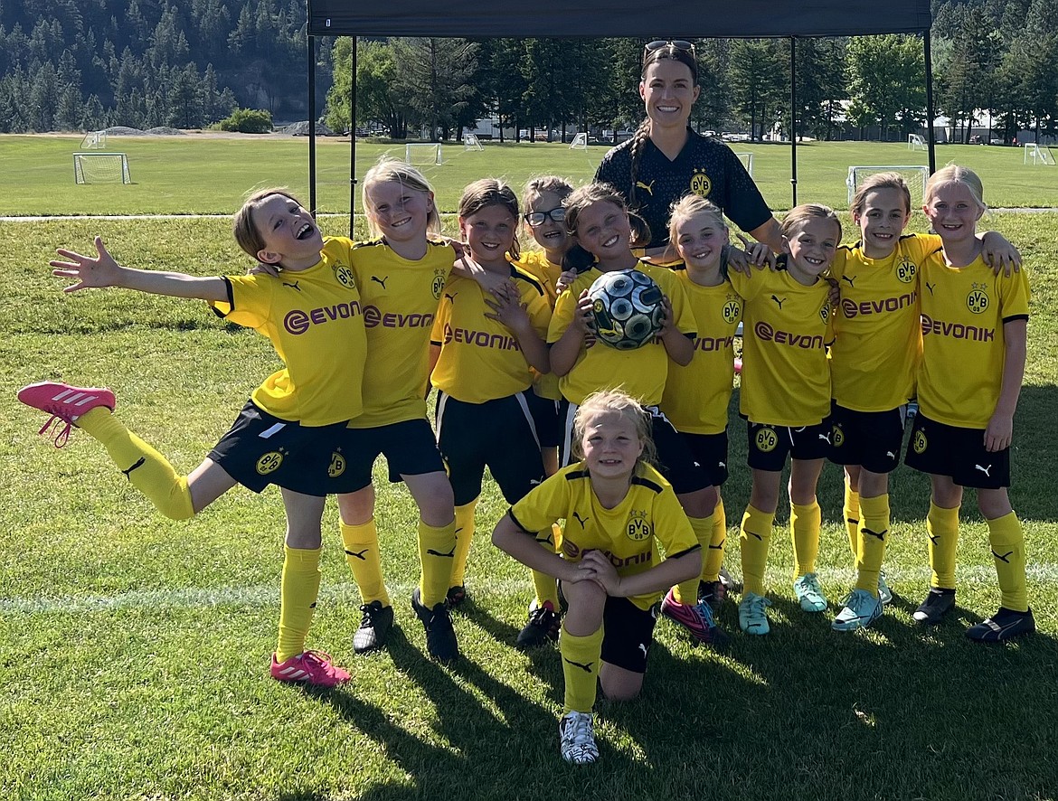 Courtesy photo This past Saturday, the BVB IA CDA U9 girls soccer team earned a 6–3 win over WE Surf SC G7 White Bond at the Plante's Ferry Sports Complex in Spokane Valley. In the front is Jane Buffum; standing from left, Esther Green, Kaia Lindenstein, Eva Bozinov, Sadie Lehosit, Elise Bozinov, Grace Looney, Reagan Zimmerman, Sadi Lewis and Nora Burt; and rear, coach Chelsie Dance.
