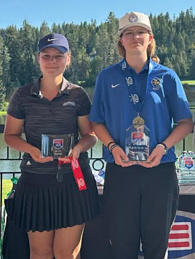 Courtesy photo Jossetta Williams, 15, right, a freshman at Coeur d'Alene High, won the US Kids 2025 Spring Championship and Points leader of the season in the Girls 15-18 division with an 83 at Latah Creek Golf Course in Spokane. Faith Sampson, 17, left, of Pullman, finished second with an 84. Kinsley Meier of Hayden was fourth with a 93, and Alivia Garcia of Hayden was fifth with a 101.