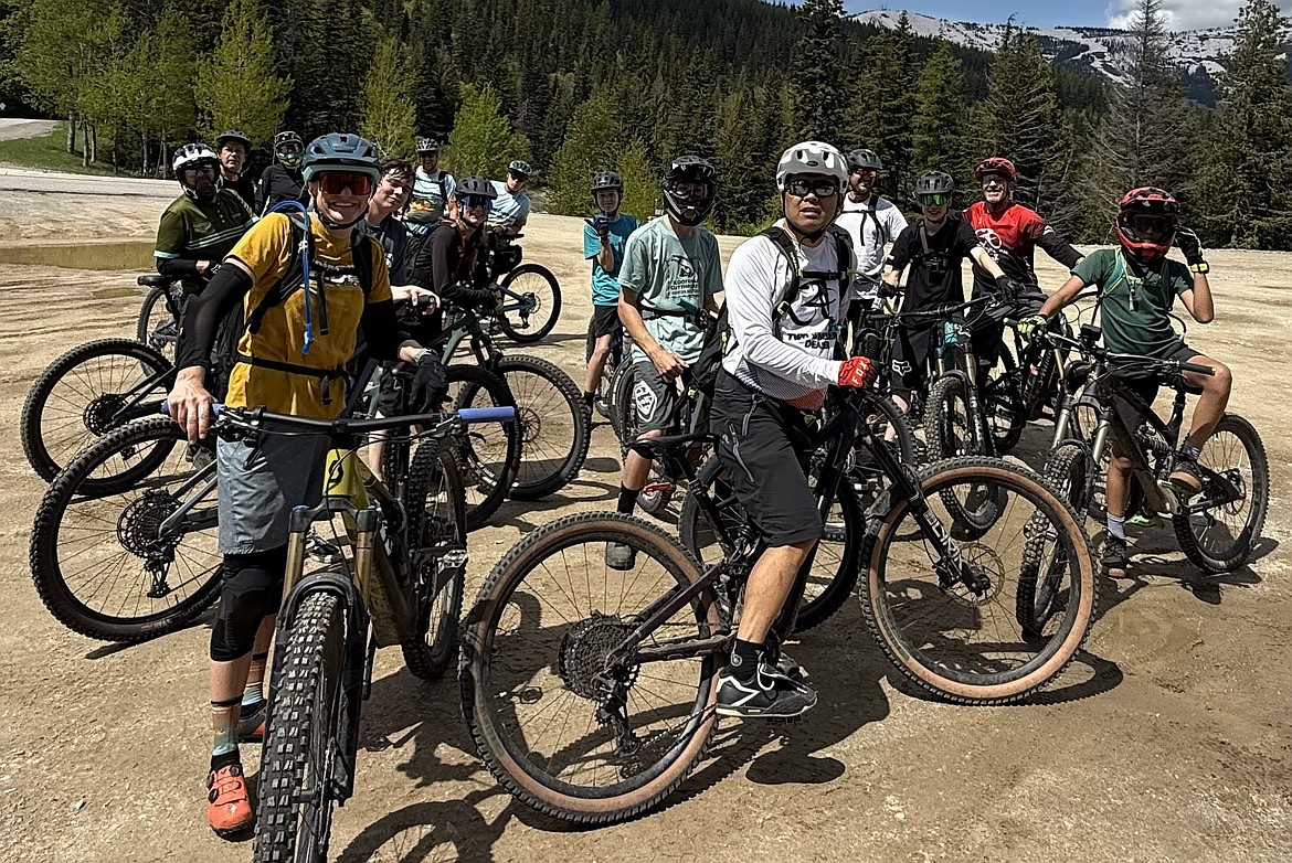 Courtesy photo Eighteen riders from the Kootenai Composite Youth Mountain Bike Team qualified for the Washington State Championship, and will compete in Gig Harbor, Wash., on Sunday. From left are Jen Fletcher, Jason McDevitt, Mark Burns, Emily Brown, Cal McDevitt, Stephen Carter, Jeff Fletcher, Aimee Cole, Miles Burns, Jack Mobbs, Al Castile, Linden Wilkinson, Cody Mobbs, Max Cole, Bob Lauer and Oliver Castile.