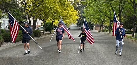 Courtesy photo Members of the Coeur d'Alene Lumbermen American Legion baseball program spent Memorial Day placing 221 flags at residences in the community in the morning, then collecting them at night. The flag project is a partnership with the Lumbermen and the Kiwanis club. It honors the nation by displaying flags in neighborhoods in Coeur d'Alene, and helps develop a service attitude in the players. From left are Kole Rodda, Brennan Jensen, Corbin Rodda and Maddix Witten.
