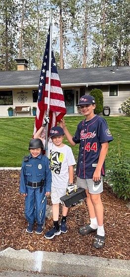 Courtesy photo Members of the Coeur d'Alene Lumbermen American Legion baseball program spent Memorial Day placing 221 flags at residences in the community in the morning, then collecting them at night. The flag project is a partnership with the Lumbermen and the Kiwanis club. It honors the nation by displaying flags in neighborhoods in Coeur d'Alene, and helps develop a service attitude in the players. Pictured are brothers Camden, Mason and Blake Anderson; Blake plays for the Lums 14U team.