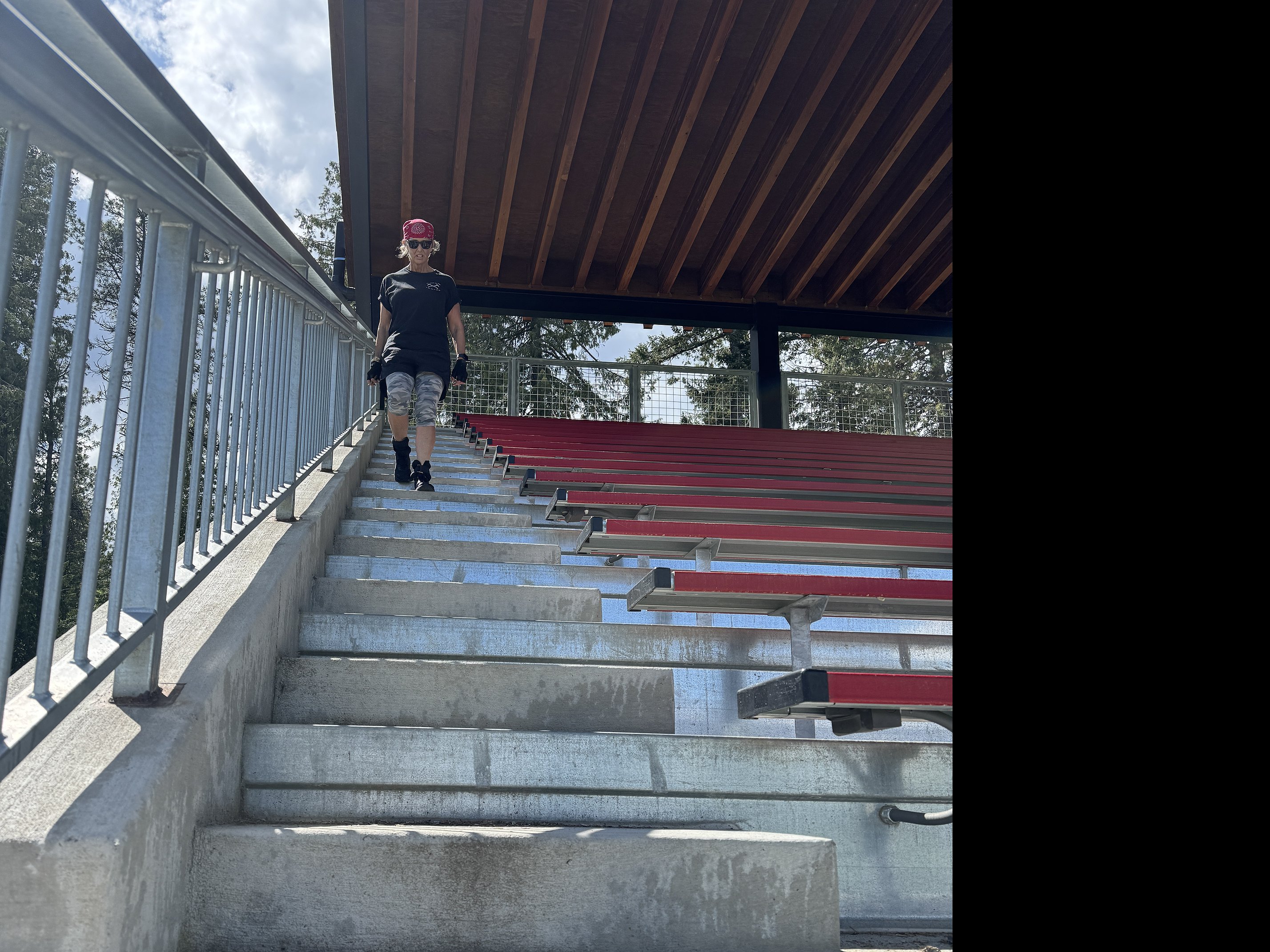 So, for the past week and a half, Ollestad has headed to the field's grandstands, running up and down the stands, over and over and over again. She carefully counts the steps, making sure to at least match the number of steps she will need to climb at Sunday's event.