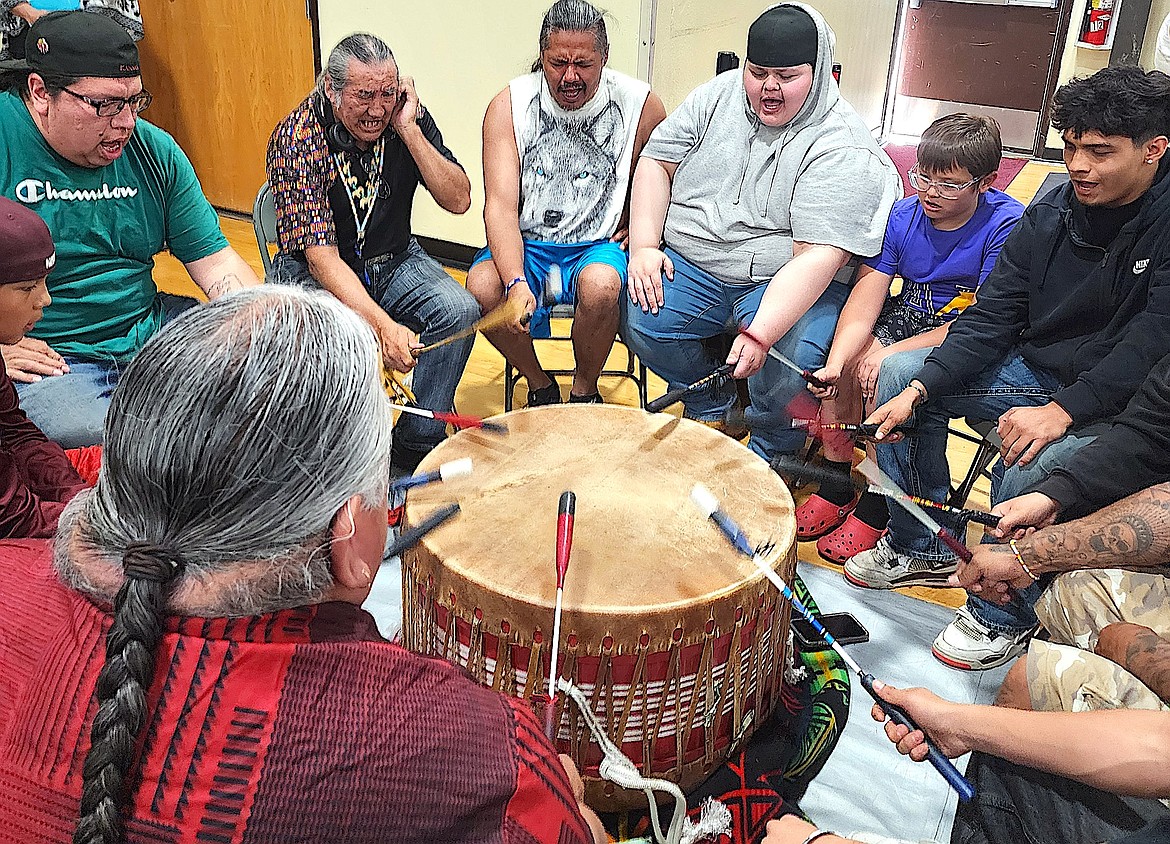 The Chief Cliff Singers sang and drummed the 2025 Two Eagle River High graduates into the packed gym Sunday for the first graduation of the season.