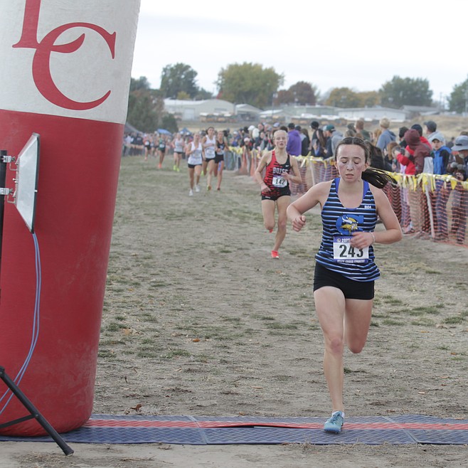 TOP THREE, LOCALS — 1, Hallie Heemeyer, Rocky Mountain, 16:29.2. 2, Audrey Orme, Boise, 16:49.9. 3, Annie Herd, Centennia, 17:21.9. 8, Talia Bonville, Post Falls, 17:39.8. 11, Olivia May, Coeur d’Alene, 17:48.3. 20, Victoria Howard, Coeur d’Alene, 18:11. 31, Dakota Keyworth, Coeur d’Alene, 18:31.8. 42, Gracie McVey, Coeur d’Alene, 18:47.3. 55, Madison Zimmerman, Lake City, 19:22.9. 66, Dorothy Pope, Post Falls, 19:47.7. 70, Emmalyn Sorensen, Post Falls, 20:02.6. 71, Kimberly Lackey, Post Falls, 20:22.9. 77, Ainsley Parker, Post Falls, 21:07.4. 79, Grace Callahan, Coeur d’Alene, 21:26.4. 81, Kamilah Luna, Post Falls, 21:40. 83. Emily Taylor, Post Falls, 22:38.4.