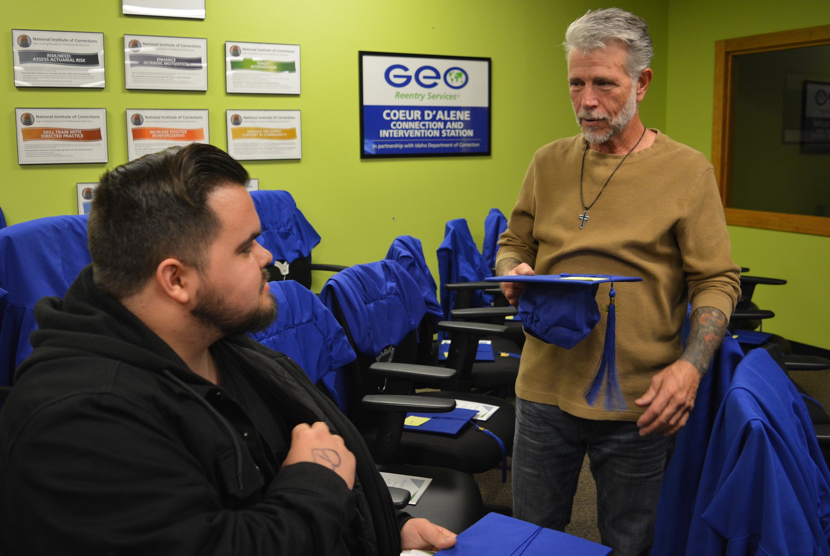COEUR d’ALENE — In the moments before the reentry ceremony began, Martin Rice-Lambott and Jimmy Polson conferred as they began putting on their blue caps and gowns to mark the milestone of reaching graduation.