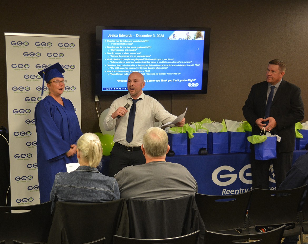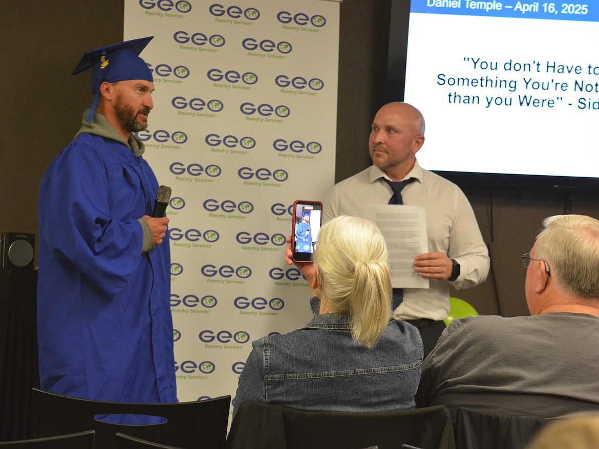 Douglas Miller commended about 20 graduates and their families on behalf of GEO Reentry Services for not only working on their sobriety, but also working toward healthier outcomes for themselves.