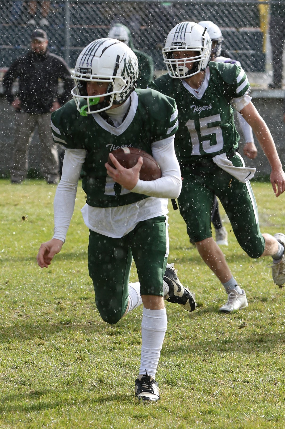 Hosting St. Regis’ first home playoff game ever, coach Jesse Allan and his Tigers made it count with an emotional 28-0 shutout win over the visiting Sheridan Panthers on a rainy Saturday afternoon at St. Regis High School.