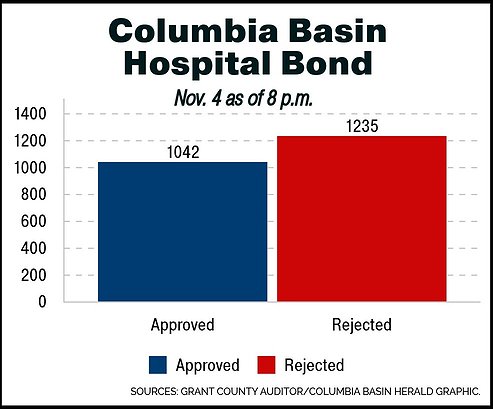 EPHRATA – Columbia Basin Hospital ran its $30 million bond proposition for a second time during the general election. The proposition, as of the 8 p.m. Nov. 4 ballot count, has been rejected with about 1,100 votes, or nearly 56% of voters against it. Around 44%, or almost 830 people, voted in favor of the bond. There are still around 900 ballots to count. The election will be certified Nov. 20.