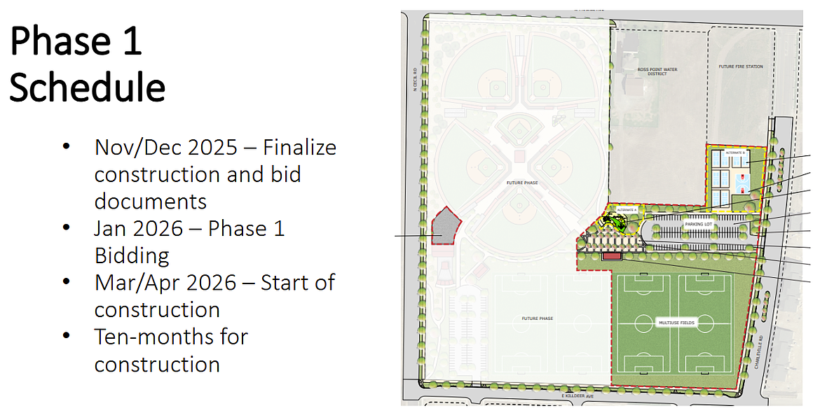 Robbie Quinn, city park planner, said phase one plans for the complex include two multipurpose fields, a parking lot, the restroom concessions building, an entry plaza and a maintenance yard.