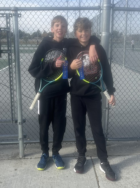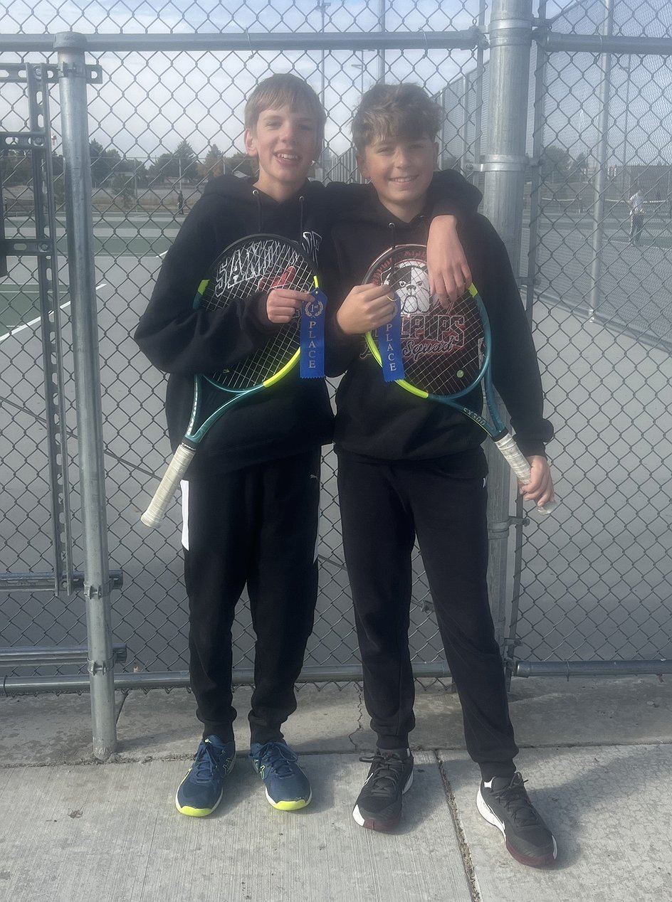 Theo Jannsen and Wyatt Winther took home first-place ribbons after their fantastic finishes in No. 2 doubles. Coach Anderson said his entire team played "lights out" throughout the tournament. In addition, Jannsen and Winther won by scores of 6-0 and 4-0 and in their matches against Lake City and Coeur d'Alene leading up to the districts.