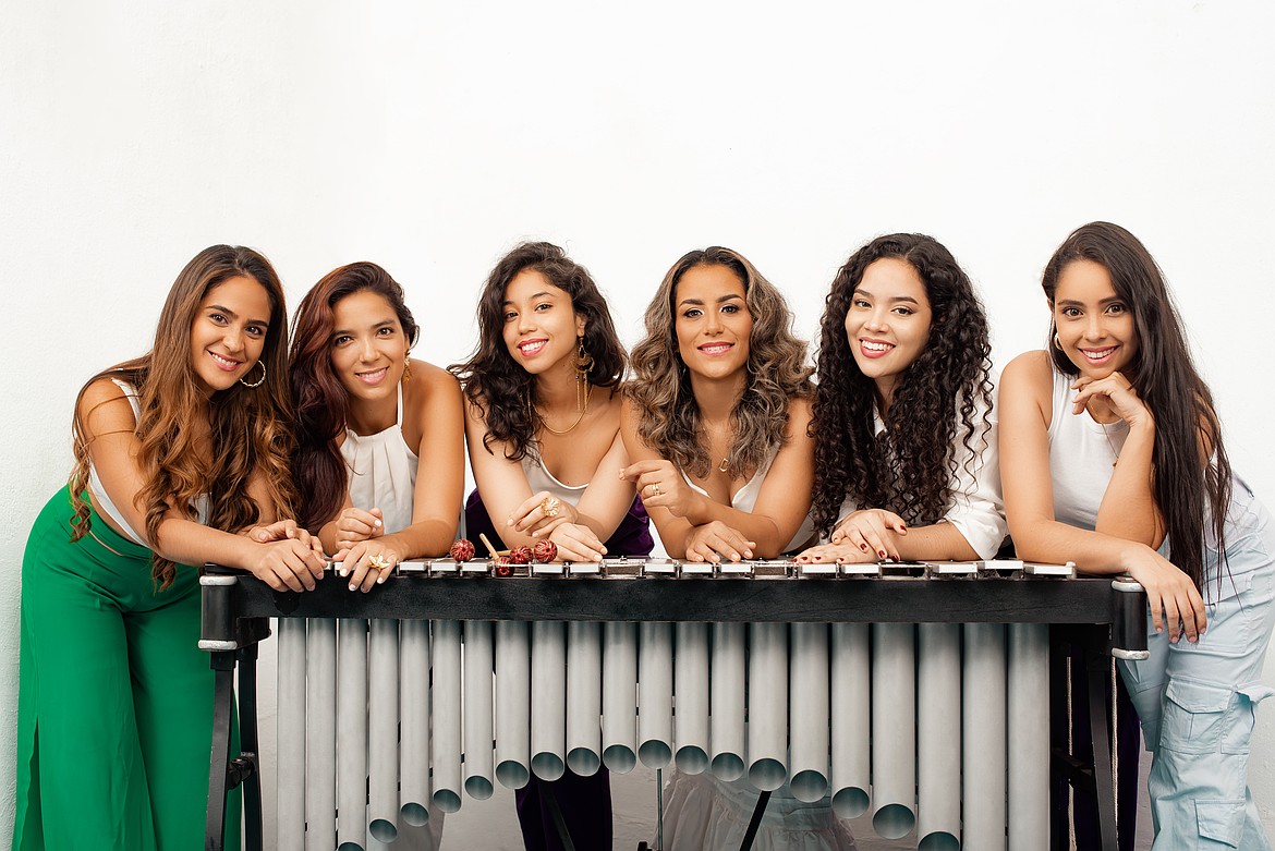 Las Guaracheras is a powerful Latin music sextet from Cali, Colombia that performs Afro-Caribbean rhythms such as salsa, as well as music from the Pacific region of Colombia. Performed on vibraphone, percussion, bass, piano and vocals, the music of Las Guaracheras communicates joy, memory and transformation while encouraging listeners to dance, sing and reflect on the feelings that music inspires. Their compositions and lyrics revolve around the revindication and recognition of the role of women in the music industry, especially in the Latin music scene in Colombia, and seek to express the power and strength of women as sources of love, hope, resilience and creativity.
