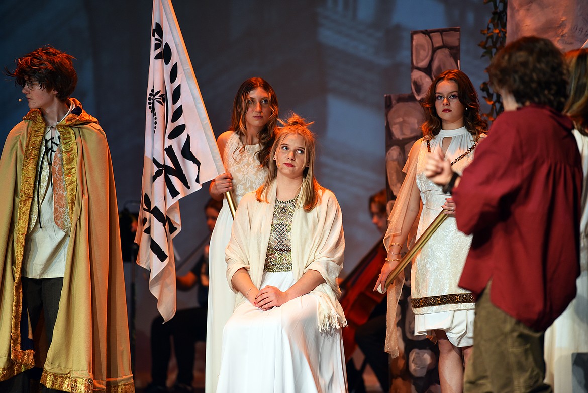 This production is directed by April Williams, assistant Nancy Wilson, and tech director Micah Groschupf. Live music is performed by the student quartet: Kalina Bruckerhoff, Nadia Reese, Zyra Singer and Harley Williams.
