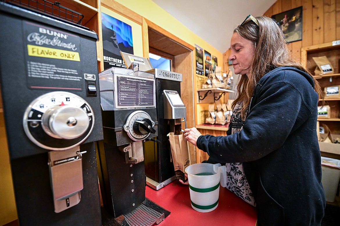 A blend of Sumatran and Ethiopian coffee beans are ground at Montana Coffee Traders Roastery and Cafe in Whitefish on Friday, Nov. 7. (Casey Kreider/Daily Inter Lake)Casey Kreider