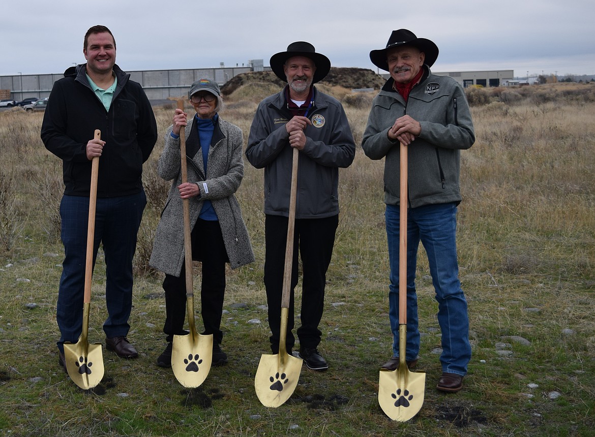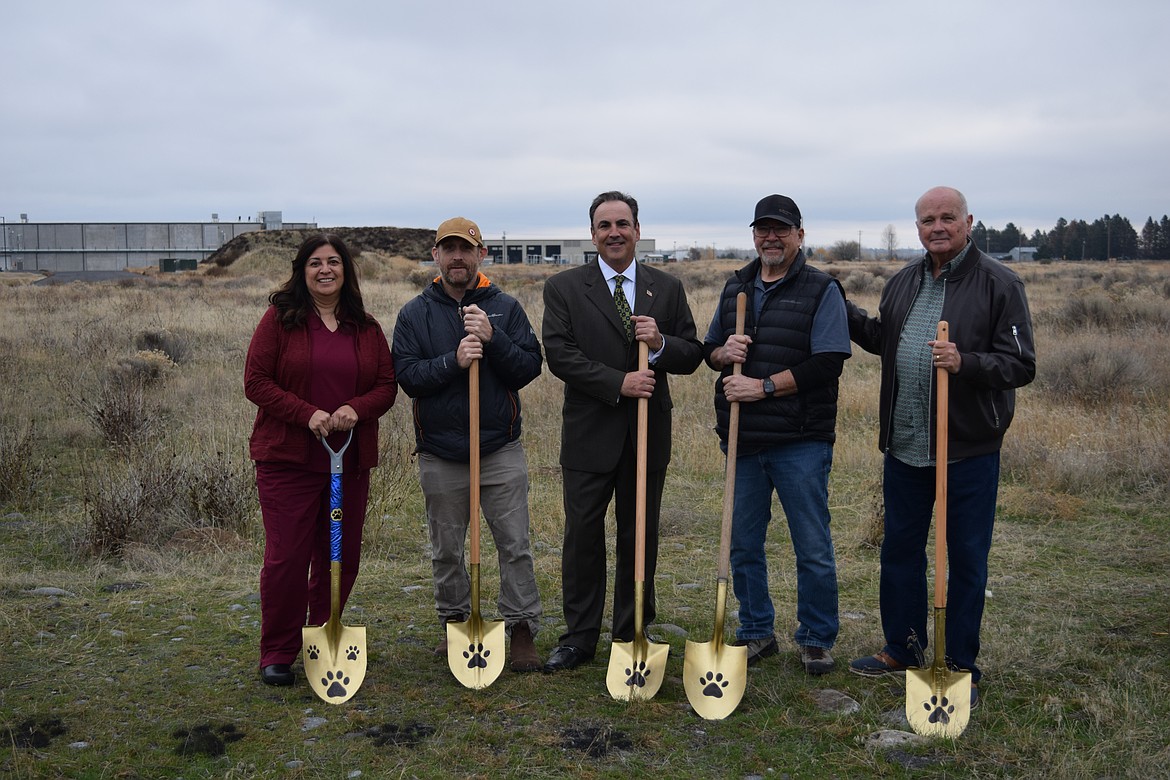 Moses Lake City Council member Deanna Martinez, Moses Lake Mayor Dustin Swartz, council member Victor Lombardi, council member David Skaug and former council member David Eck attend the groundbreaking ceremony for the new Grant County Animal Outreach building. All five, representing the City of Moses Lake, helped to secure around $1 million in city funds for the new shelter.ARTICLES BY NANCE BESTON