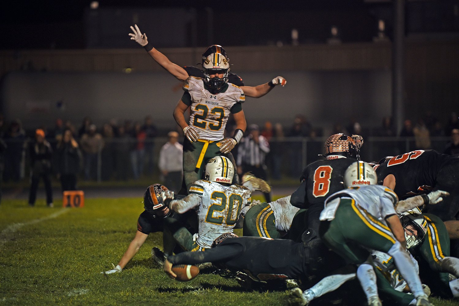 Frenchtown’s Dawson Rodini’s 11-yard touchdown pass to Cooper Michaud was followed by a 31-yard field goal by Brett Kleinsmith to leave the Bulldogs trailing 10-0 in the first quarter.