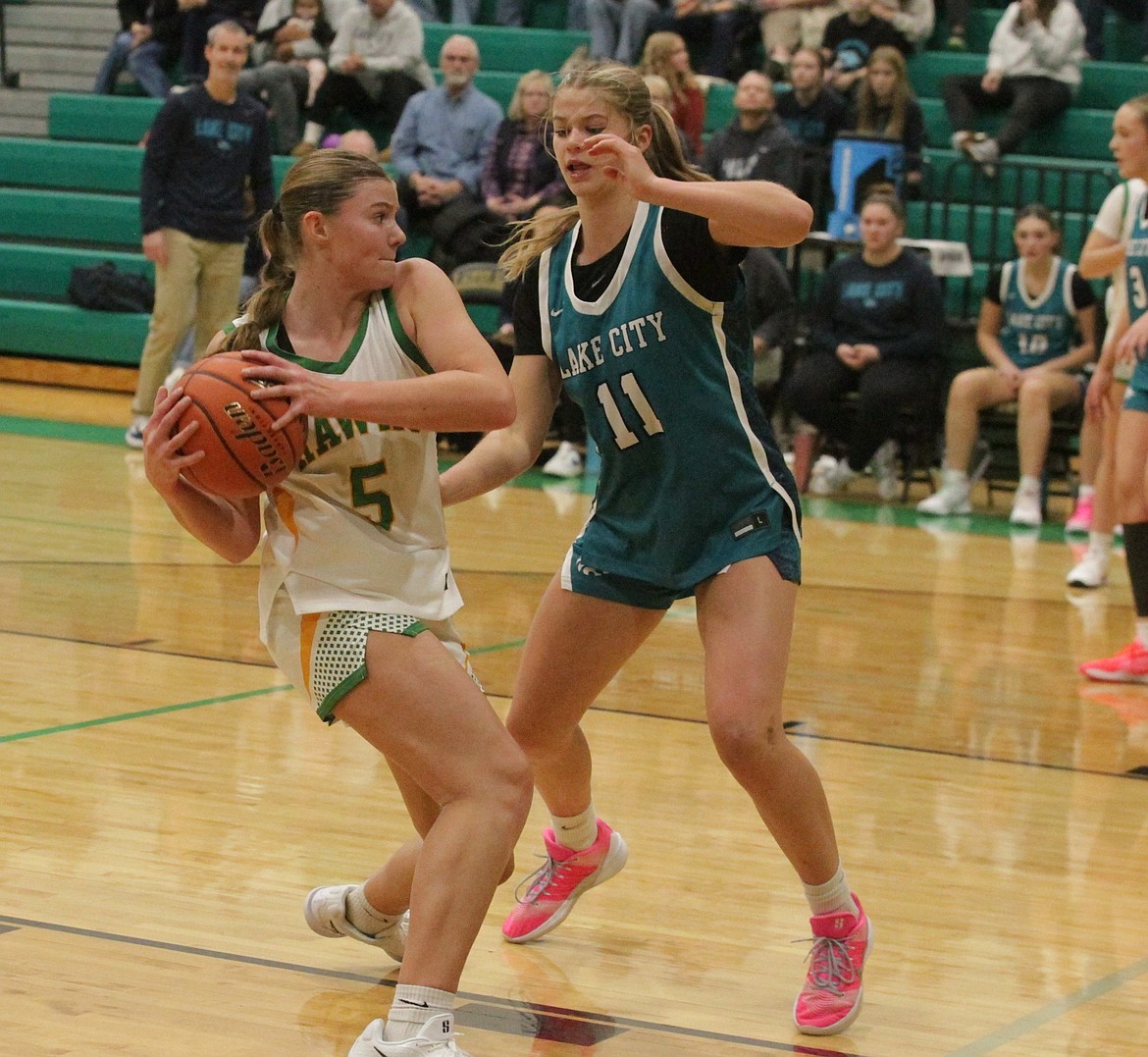 RATHDRUM — Junior Mariana Bullington and freshman Jaeli Hoffman scored 16 points as the 5A Lakeland Hawks defeated the 6A Lake City Timberwolves 54-28 in the season opener for both teams Tuesday at Hawk Court.