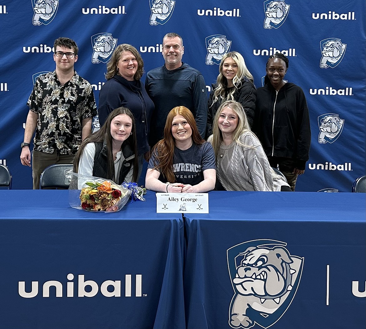 Courtesy photo Ailey George, a Coeur d'Alene resident and senior at Gonzaga Prep in Spokane, recently signed a letter of intent to play hockey at NCAA Division III Lawrence University in Appleton, Wis. Ailey plays for the Coeur d’Alene Lady Thunder 19U team out of the Frontier Ice Arena in Coeur d'Alene. Seated from left are Mickayla O’Hara (teammate), Ailey George and Abbi Book (friend); and standing from left are Tyler George (brother), Jenn George (mother), Chris George (father), Megan Bowdish (friend) and Victoria Nairimo (friend).