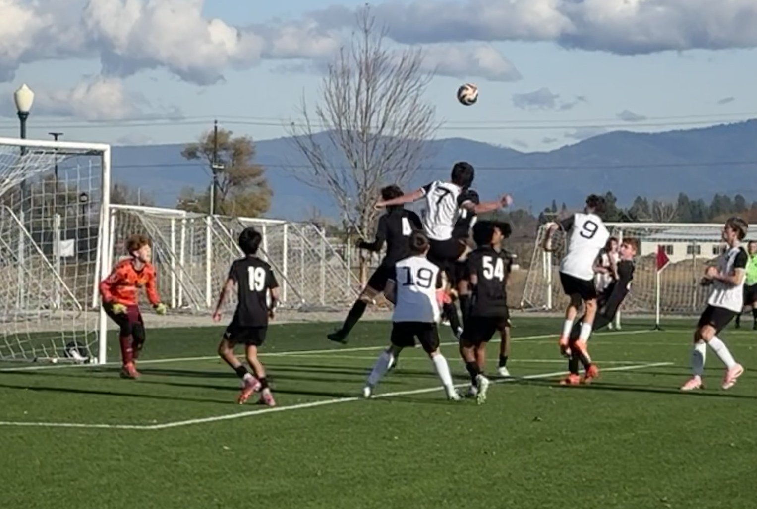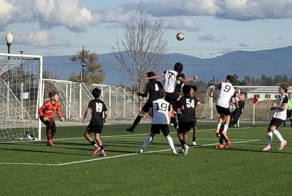 Courtesy photo The Sting 2011 Boys Academy soccer team won both games a couple weekends ago. Jay Blue (7, in white) of the Sting scored a header goal from a corner kick, to win in the last seconds, 3-2 against BVB Washington, on Nov. 8. On Nov. 9, the Sting won 6-0 against Sparta Tacoma.