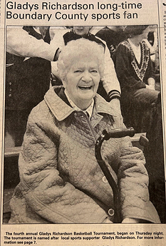 Her unwavering support of grade school and high school athletics earned her the nickname “Gramma Badger.” Everyone knew to keep her seat, located behind the home bench, open in the gym. She spent countless days at the fairgrounds watching summer baseball and youth county sporting events. In recognition of her dedication, the award "Outstanding Female Underclassman" is named in her honor, and alumni basketball tournaments carry her name as well. Gladys, who passed away in 2017, will always be remembered as Bonners Ferry’s first true super fan.