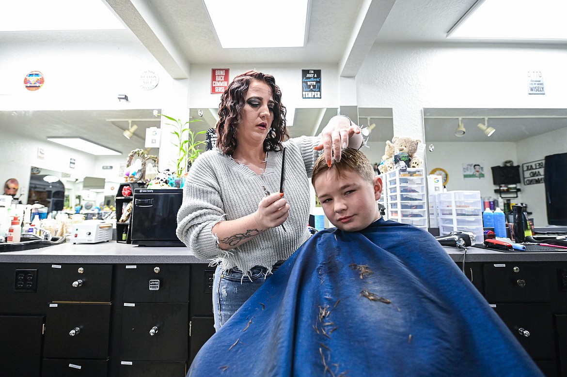 BRANDI OPENED her business in May 2019 after completing barber school in Great Falls. While she is currently the only certified barber on the team, all are graduates of Criever’s Academy of Cosmetology in Kalispell and plan on becoming certified barbers.