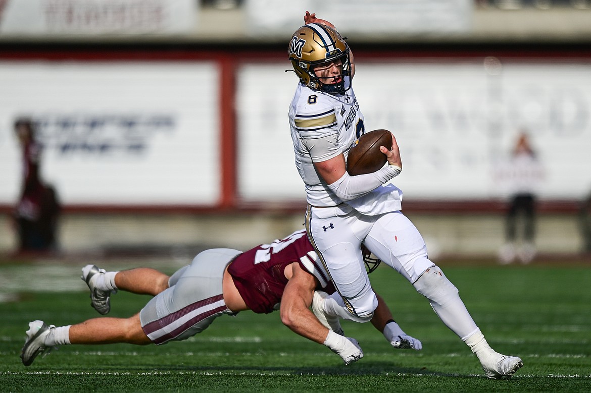 Bobcats quarterback Justin Lamson (8) runs for a gain in the first quarter against Montana in the 124th Brawl of the Wild at Washington-Grizzly Stadium on Saturday, Nov. 22. (Casey Kreider/Daily Inter Lake)