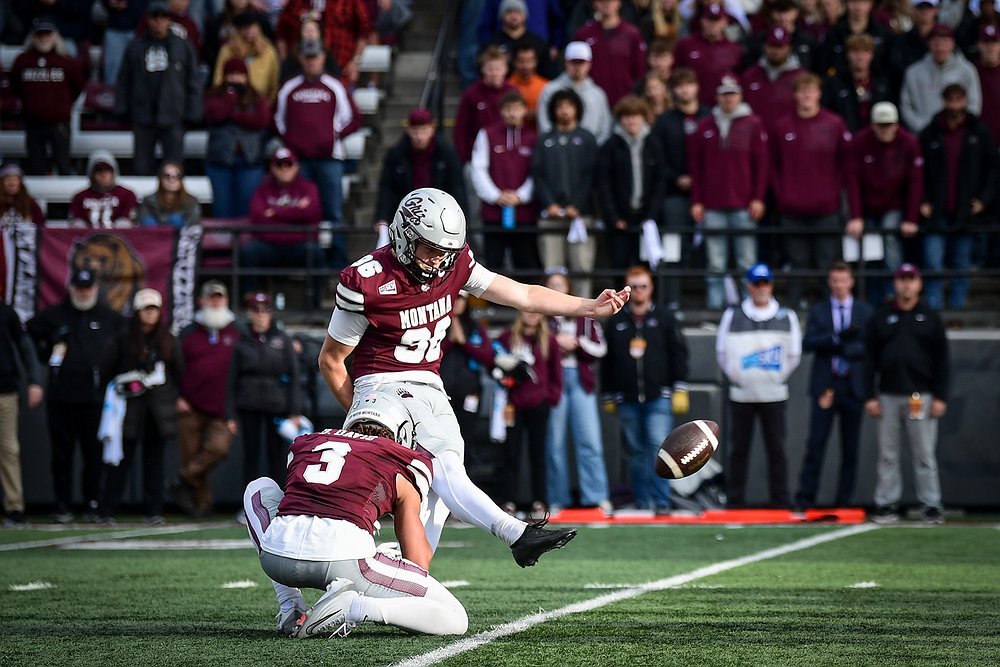 Grizzlies kicker Ty Morrison kicks an extra point in the second quarter against Montana State in the 124th Brawl of the Wild at Washington-Grizzly Stadium on Saturday, Nov. 22. (Casey Kreider/Daily Inter Lake) Casey Kreider