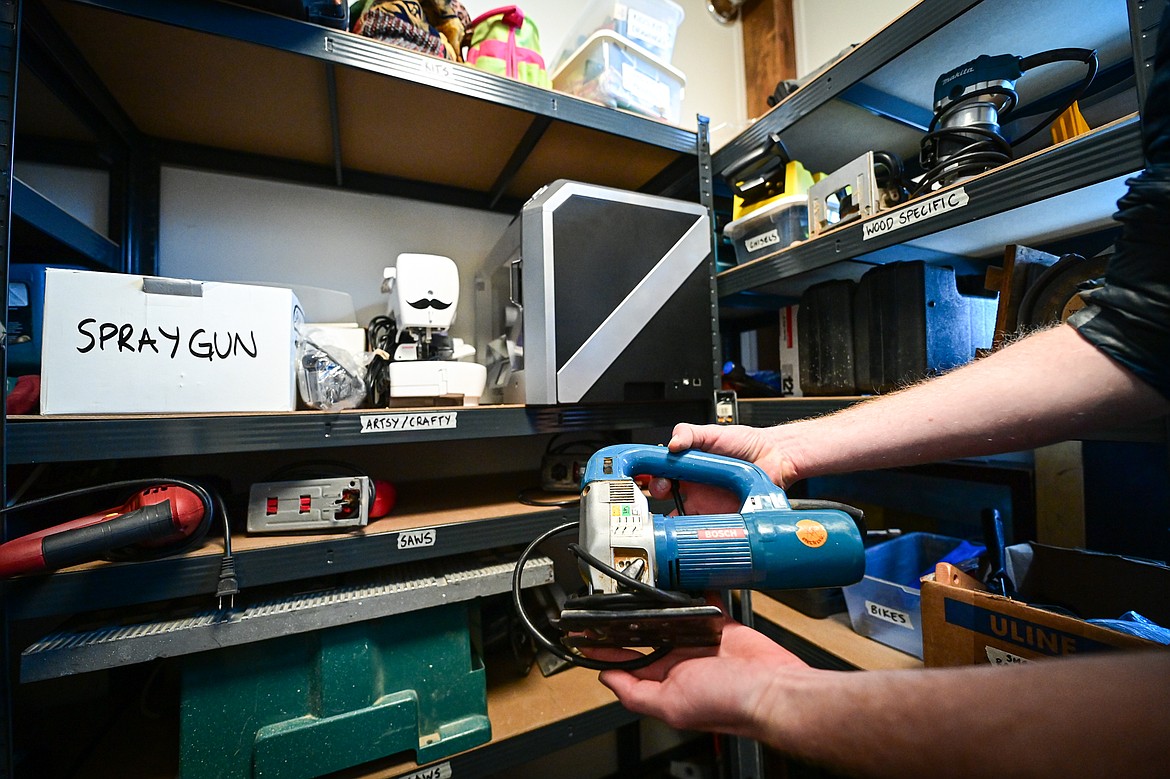 There are three resident artists, one of which is Barry, with their own studios. A shared tool library includes everything from jewelry clamps to paint brushes and sewing machines. People with memberships can access the space whenever they want to work; there are also day passes, monthly craft nights and community events.