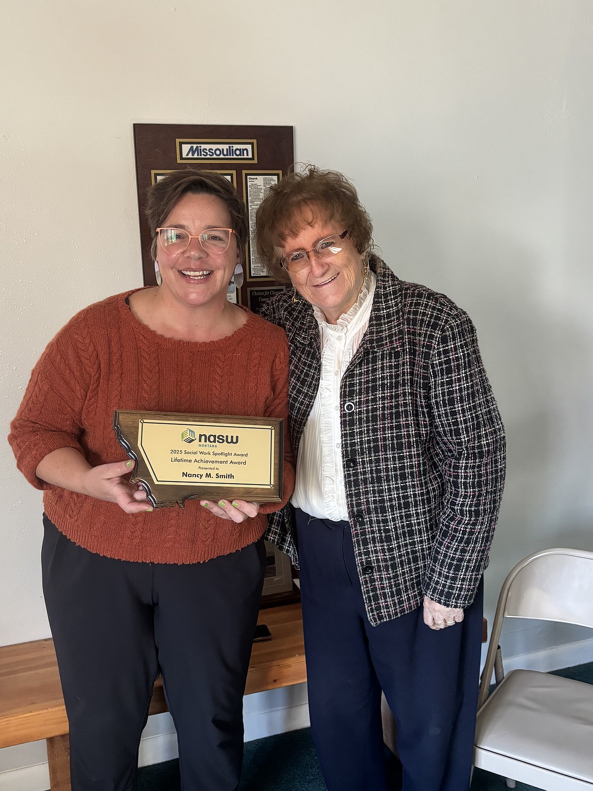 Longtime clinical social worker Nancy Smith received a lifetime achievement award Nov. 1 from the Montana Chapter of the National Association of Social Workers at Choices for Change Counseling in Superior while surrounded by family and friends.
