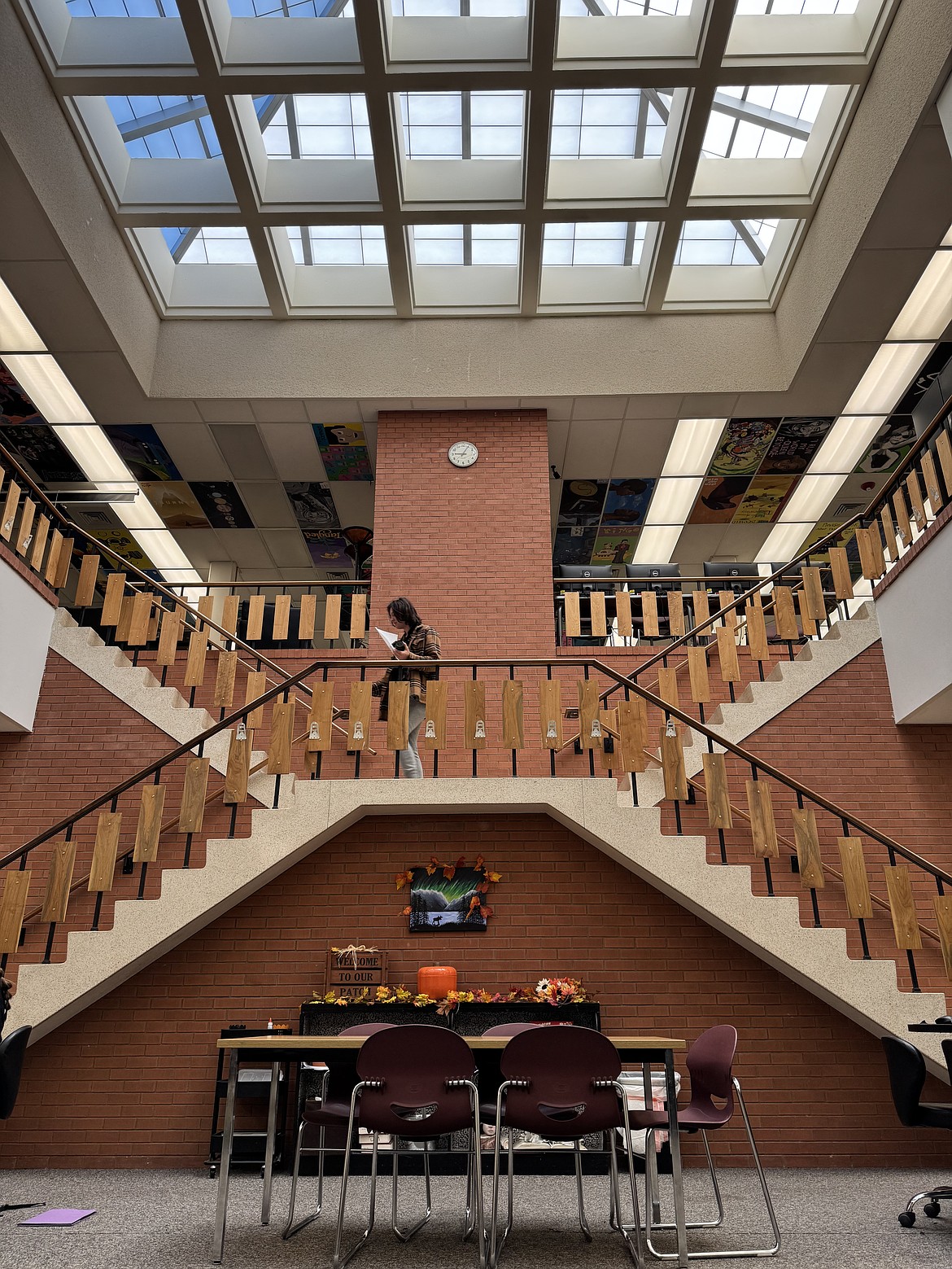 Installed by Montana Metalworks over the course of a week at the beginning of November, the new skylight is made up of what are known as fiberglass-reinforced sandwich panels. The design lets more natural light into the library, which is located at the heart of the school.