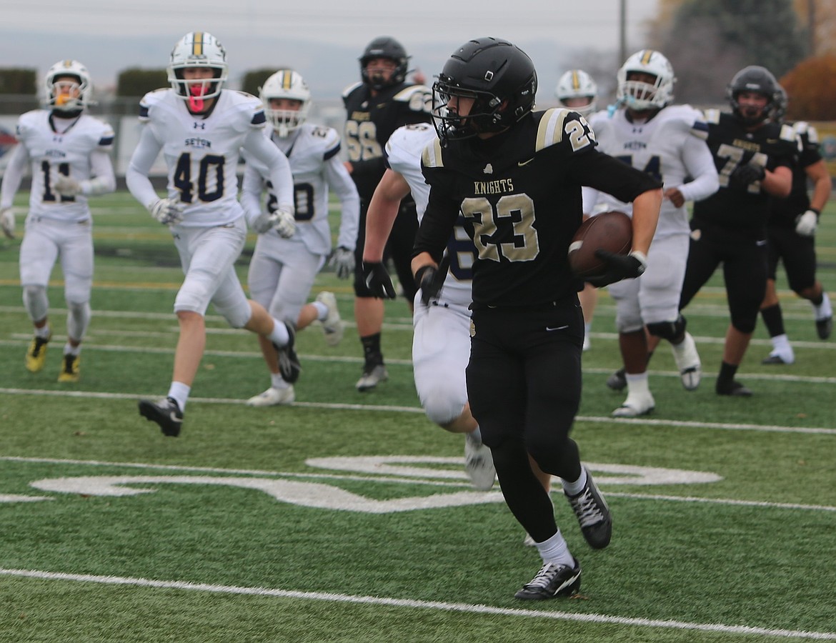 Offensively, Royal imposed their will against Seton Catholic. Grant Wardenaar completed 19 of 25 passes for 221 yards and two touchdowns. Both touchdowns went to Stevenson, who caught eight balls for 135 yards. On the run, Dax Jenks carried the rock nine times for 139 yards and two touchdowns. Wardenaar also ran for a score to help the Knights earn the win.
