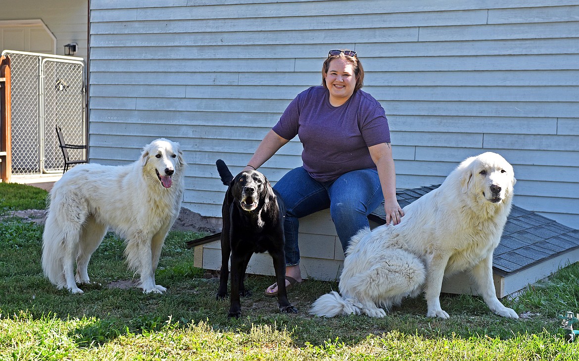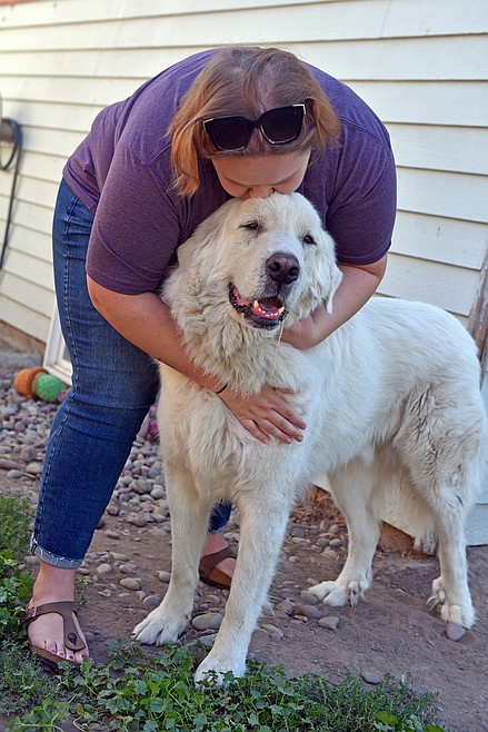 At home in Kalispell, Baldone has two brothers -- Koda, a Great Pyrenees/Anatolian Shepherd mix, and Roscoe, a 14-year-old black Labrador who oversees his giant siblings.